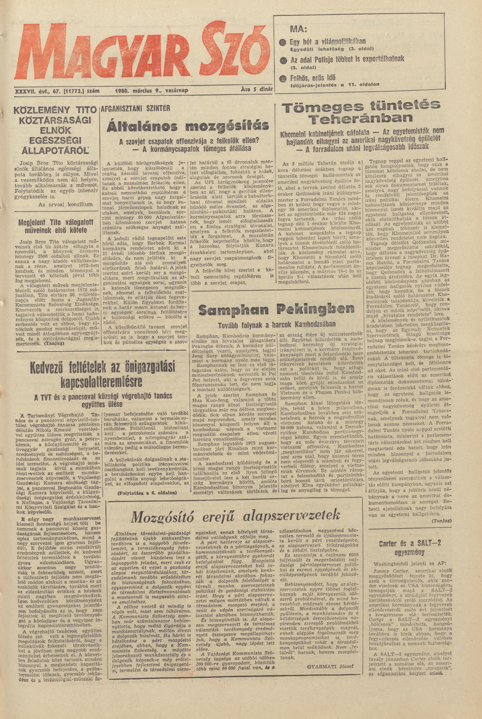 Magyar Szó, 37. évf. 1980. március 9. 67. sz. 1–28. oldal