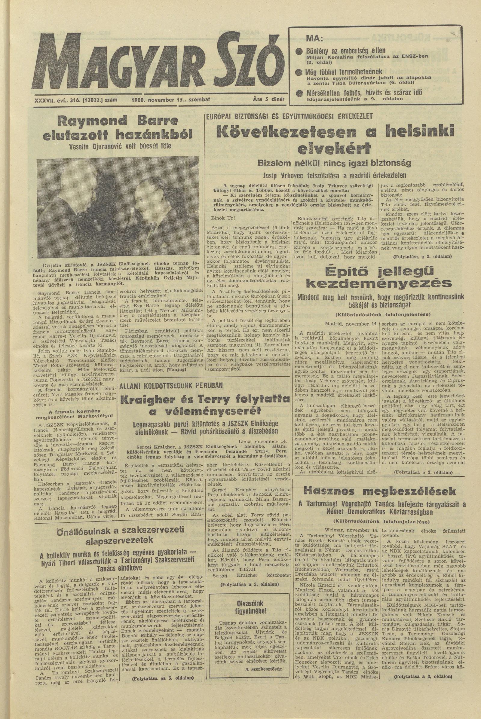 Magyar Szó, 37. évf. 1980. november 15. 316. sz. 1–20. oldal