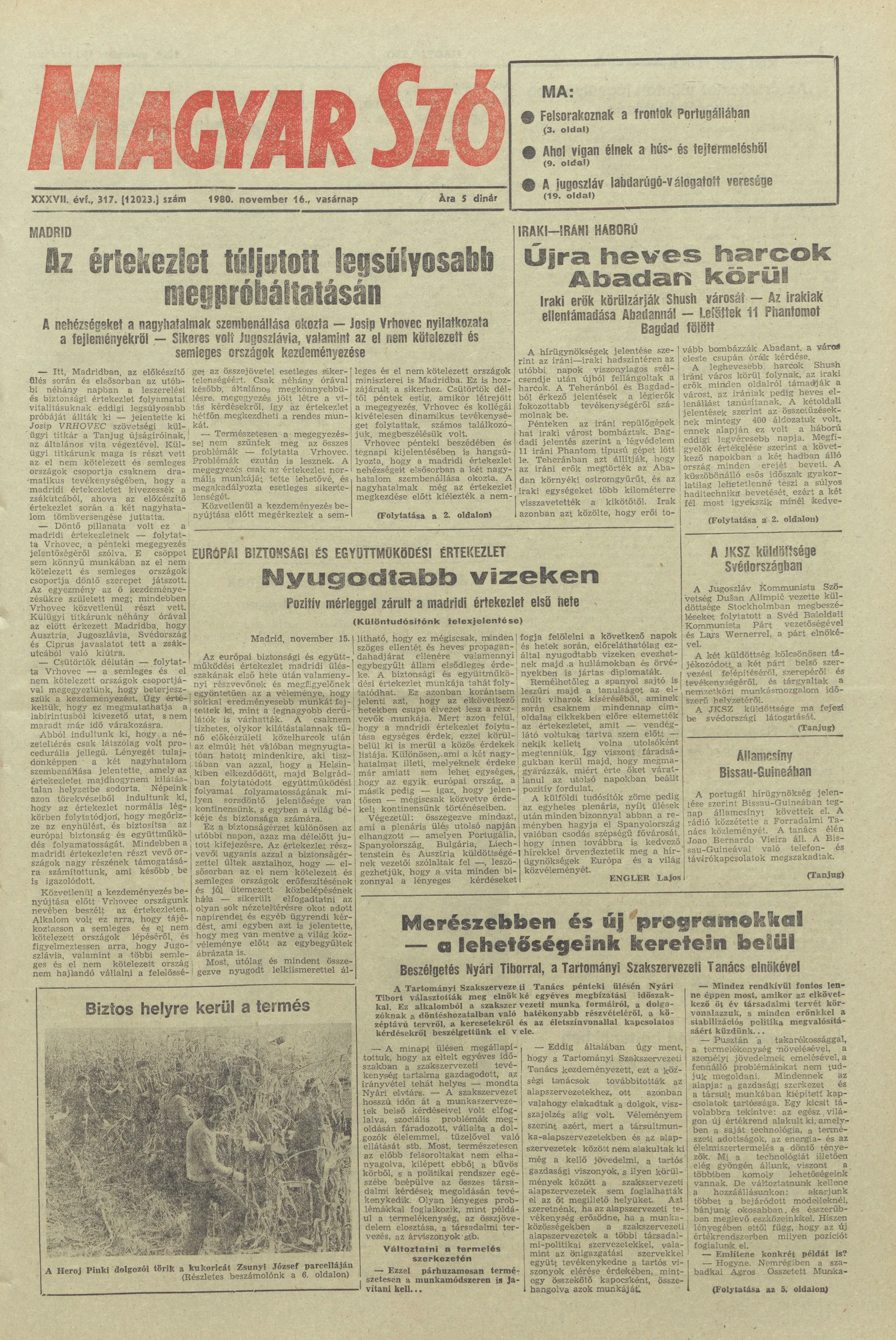 Magyar Szó, 37. évf. 1980. november 16. 317. sz. 1–28. oldal