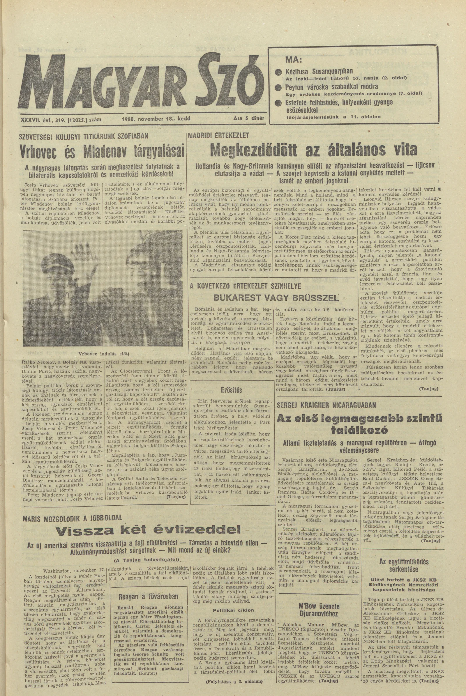 Magyar Szó, 37. évf. 1980. november 18. 319. sz. 1–20. oldal