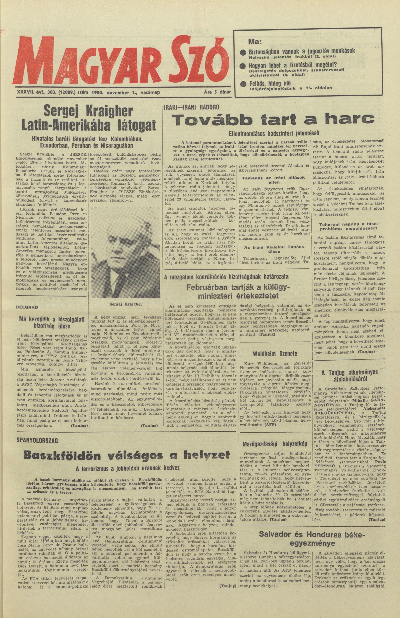 Magyar Szó, 37. évf. 1980. november 2. 303. sz. 1–28. oldal
