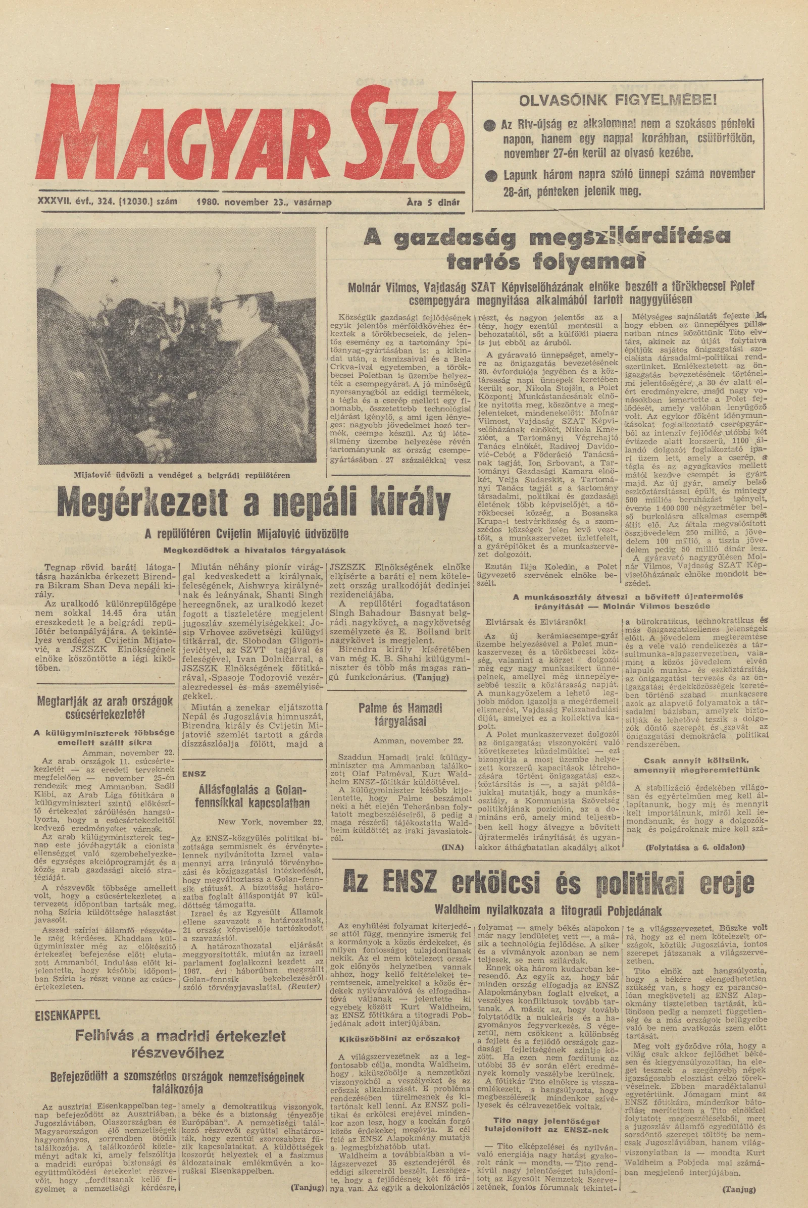 Magyar Szó, 37. évf. 1980. november 23. 324. sz. 1–28. oldal