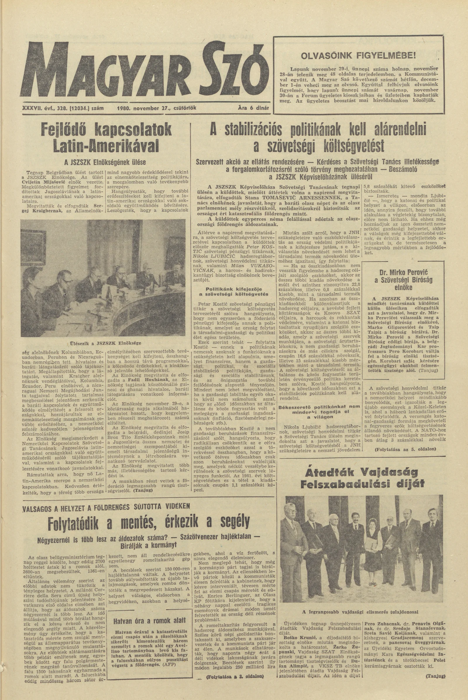 Magyar Szó, 37. évf. 1980. november 27. 328. sz. 1–20. oldal