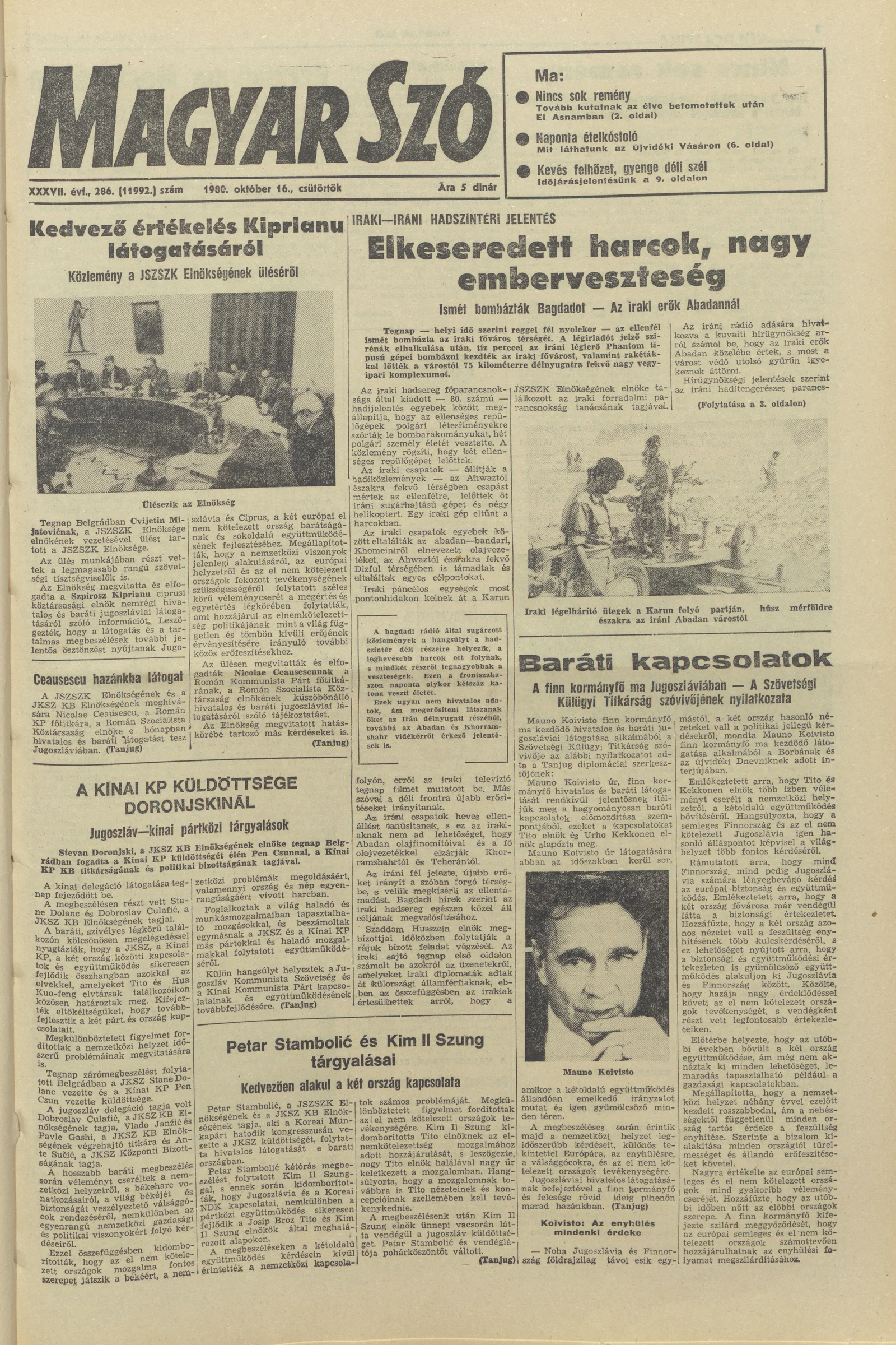 Magyar Szó, 37. évf. 1980. október 16. 286. sz. 1–20. oldal