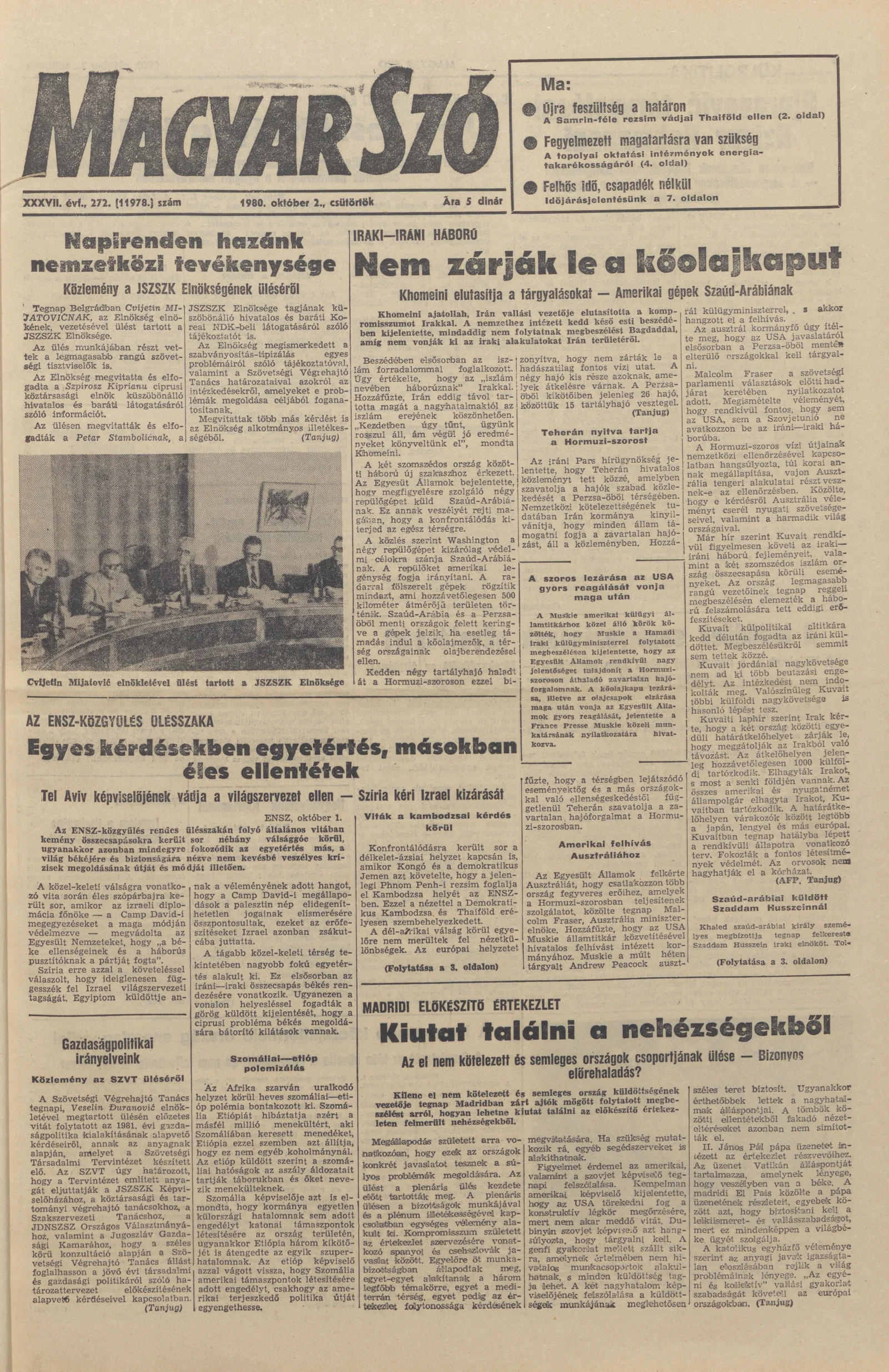 Magyar Szó, 37. évf. 1980. október 2. 272. sz. 1–20. oldal