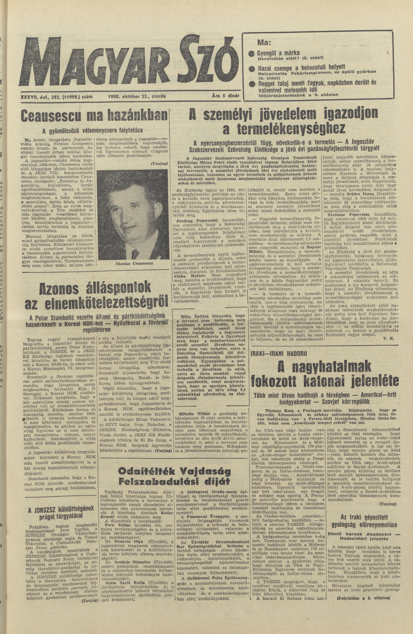 Magyar Szó, 37. évf. 1980. október 22. 292. sz. 1–20. oldal
