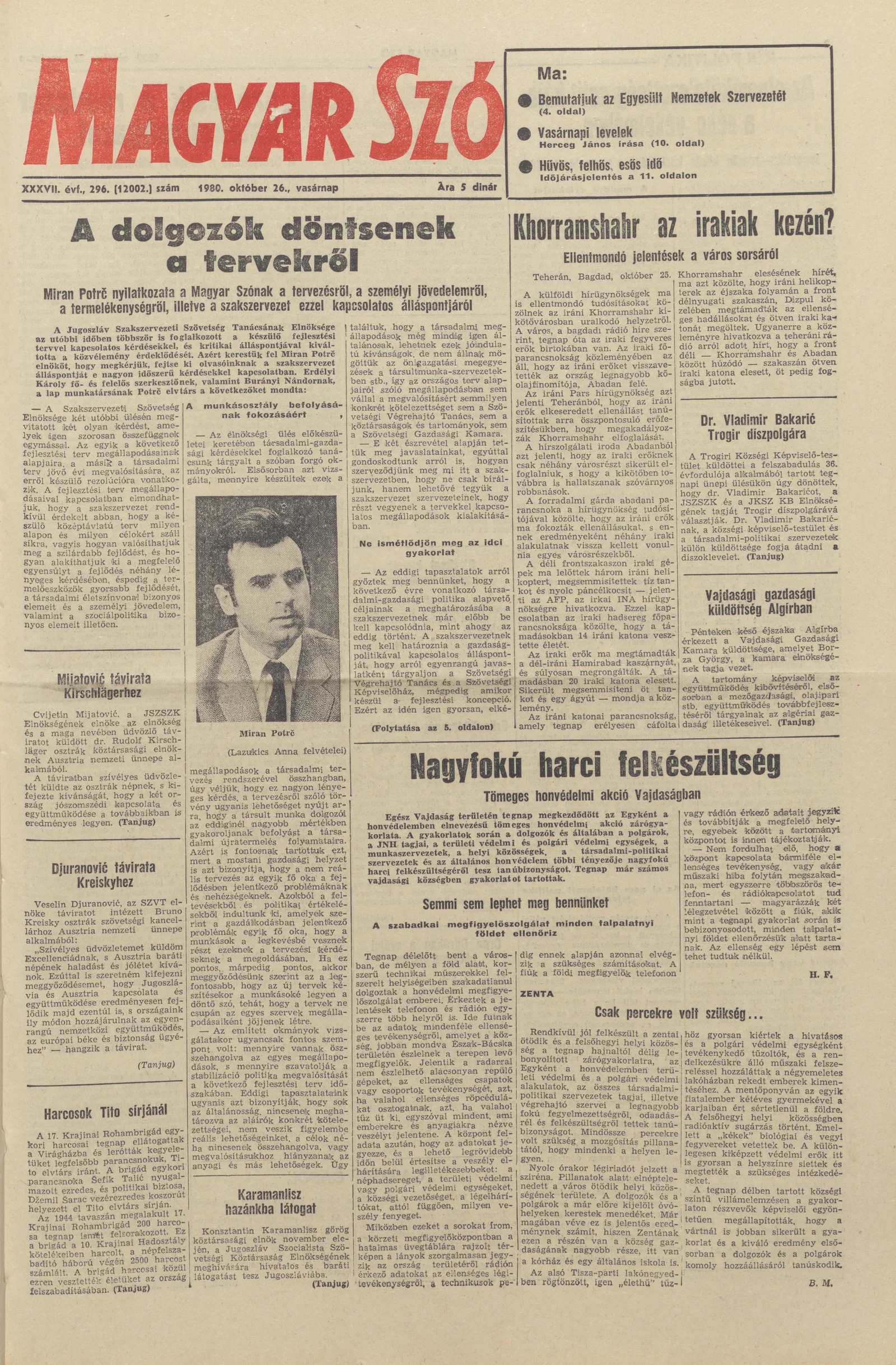 Magyar Szó, 37. évf. 1980. október 26. 296. sz. 1–28. oldal