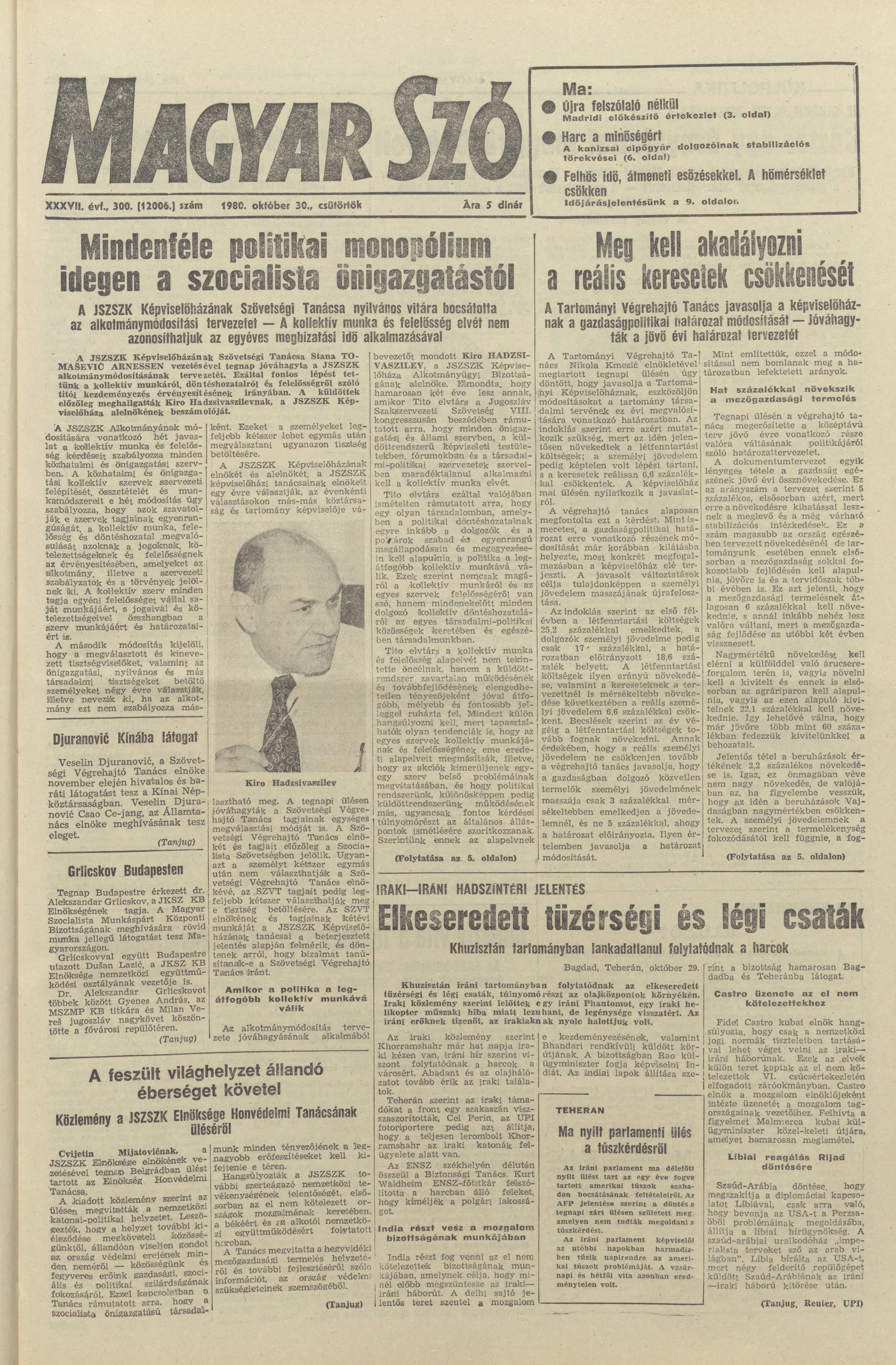 Magyar Szó, 37. évf. 1980. október 30. 300. sz. 1–20. oldal