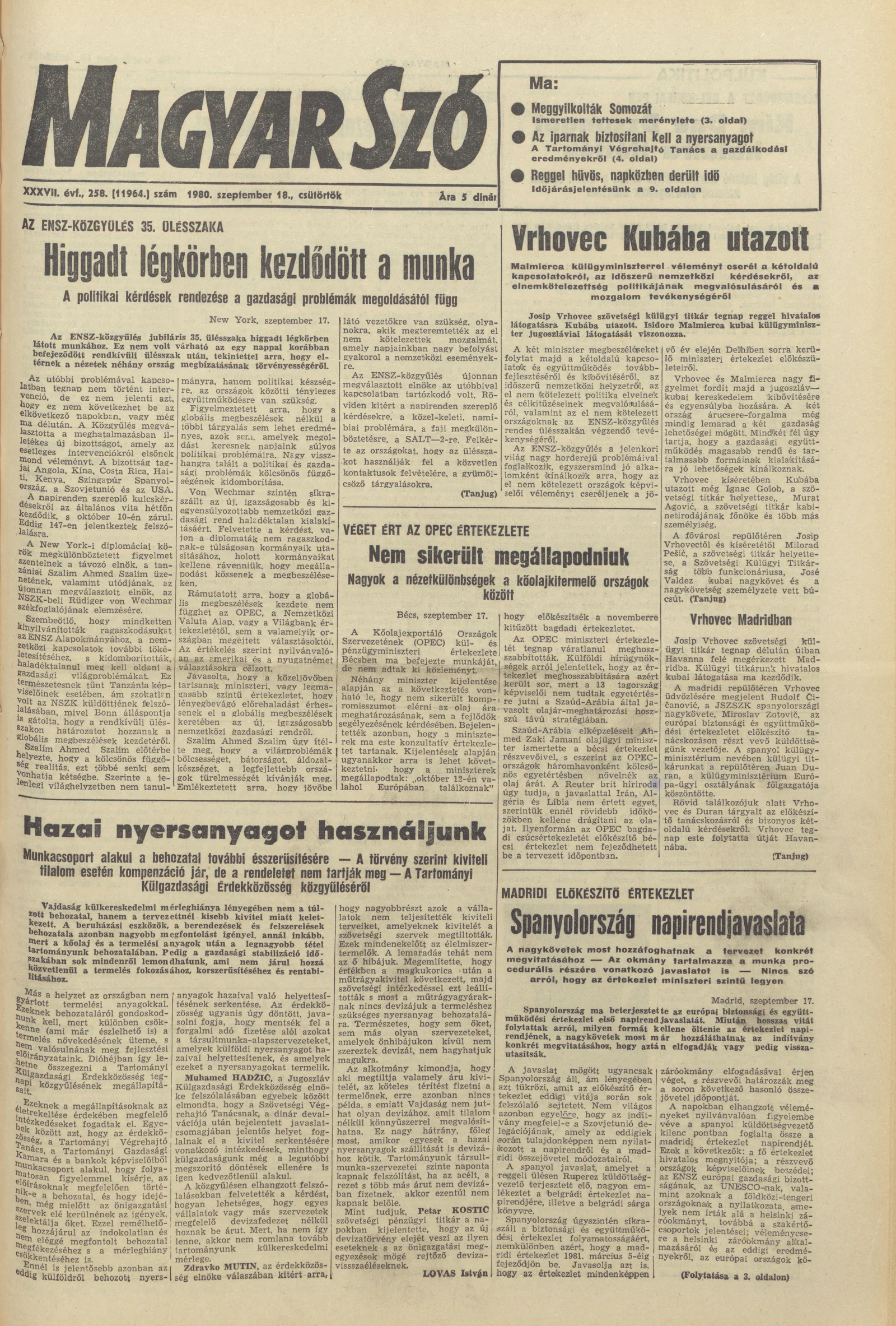 Magyar Szó, 37. évf. 1980. szeptember 18. 258. sz. 1–20. oldal