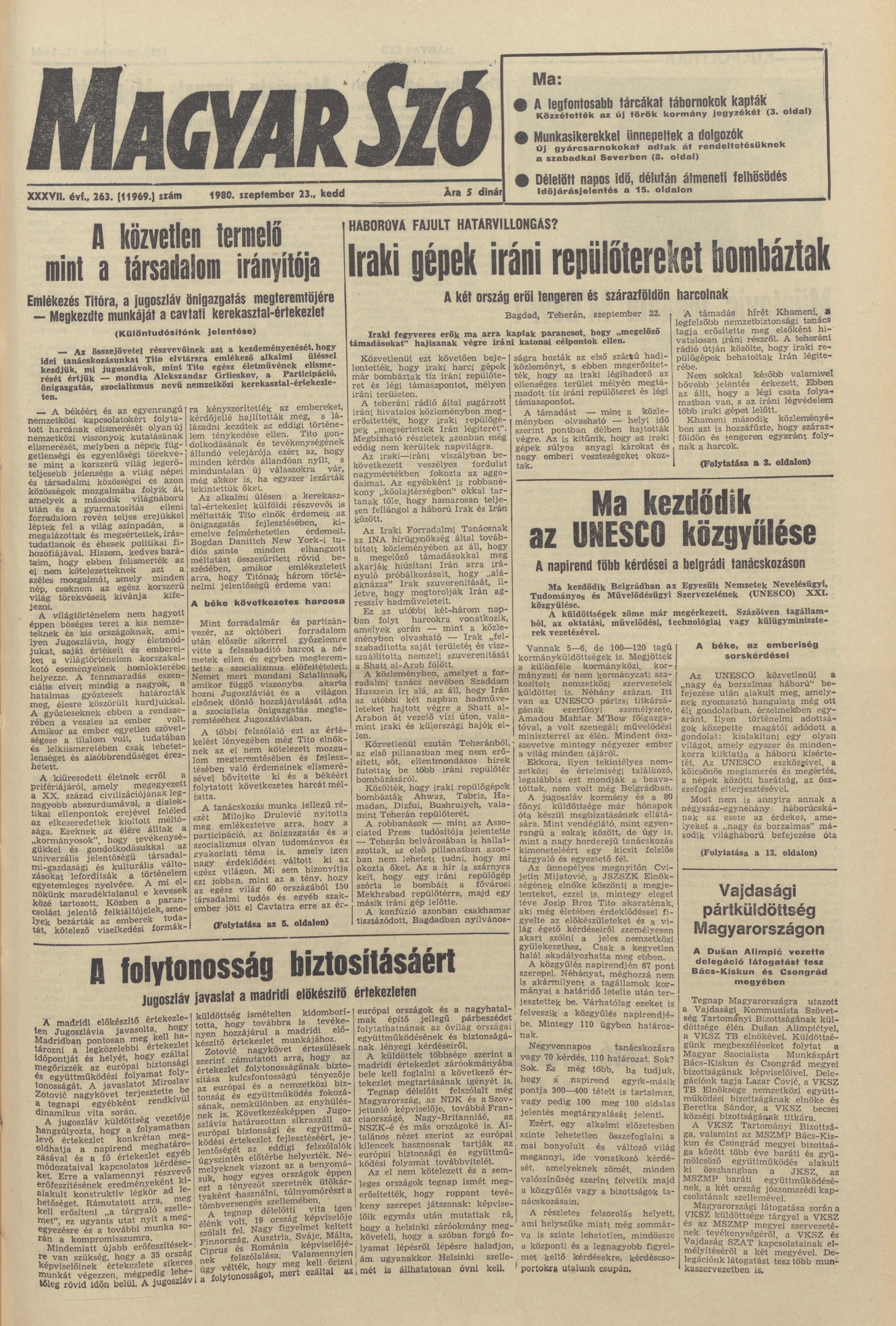 Magyar Szó, 37. évf. 1980. szeptember 23. 263. sz. 1–20. oldal