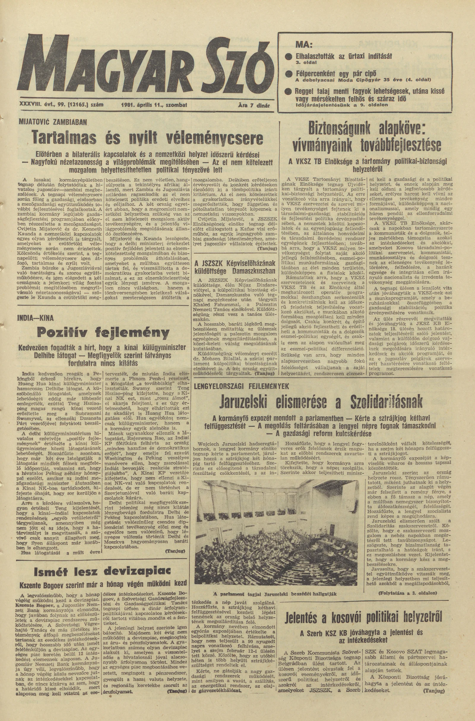 Magyar Szó, 38. évf. 1981. április 11. 99. sz.