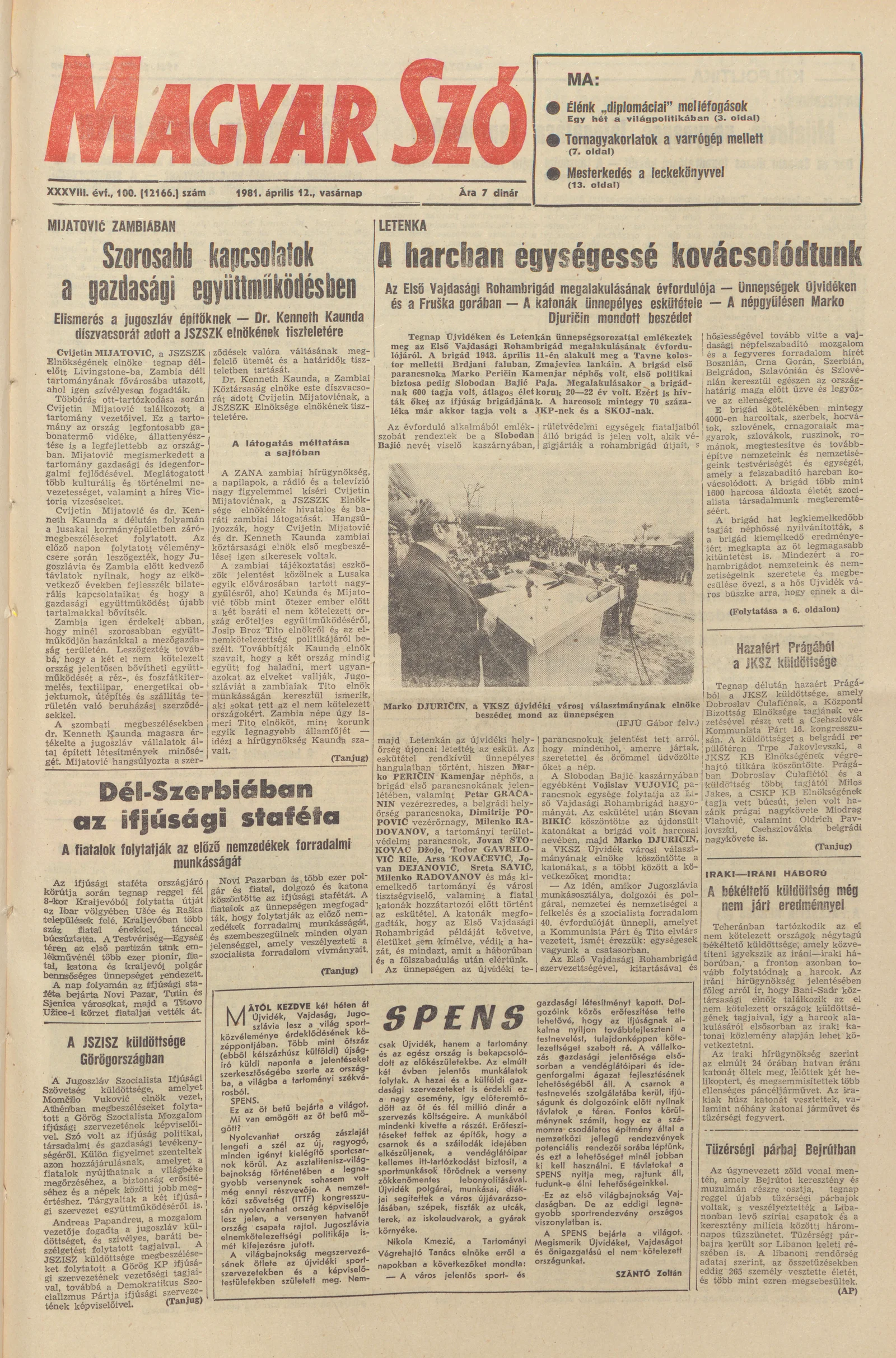 Magyar Szó, 38. évf. 1981. április 12. 100. sz.