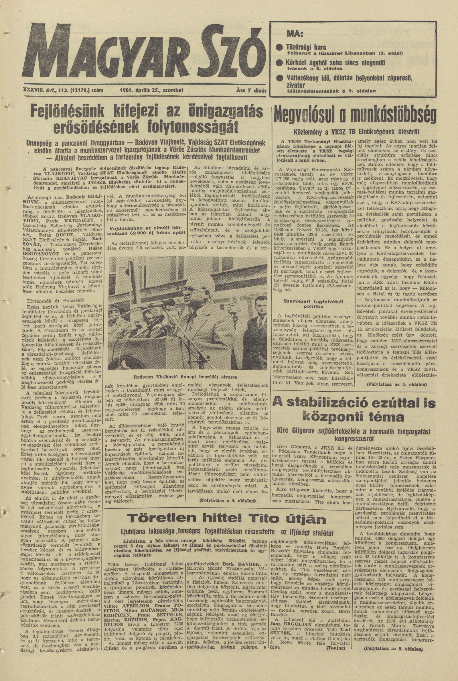 Magyar Szó, 38. évf. 1981. április 25. 113. sz.