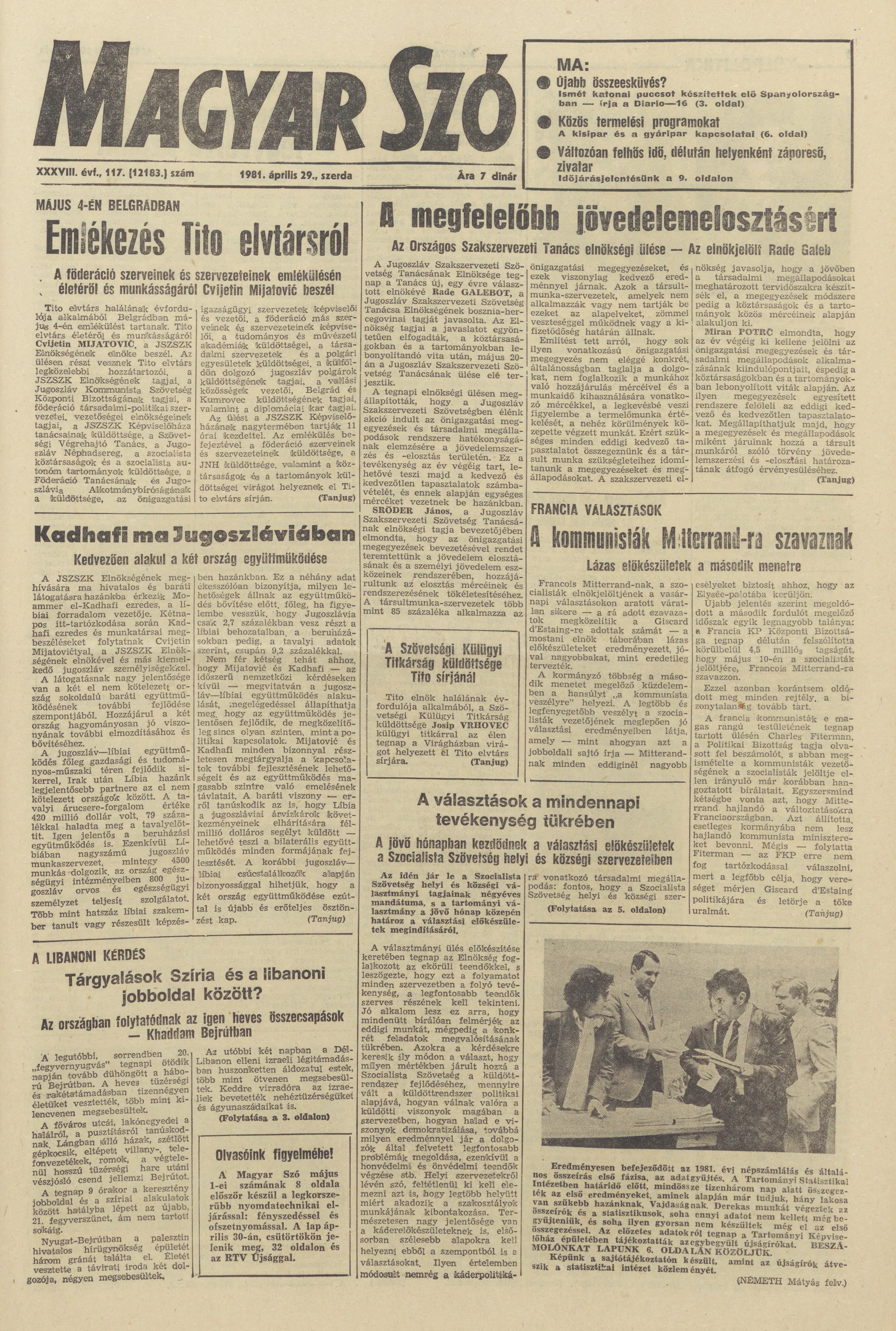Magyar Szó, 38. évf. 1981. április 29. 117. sz.