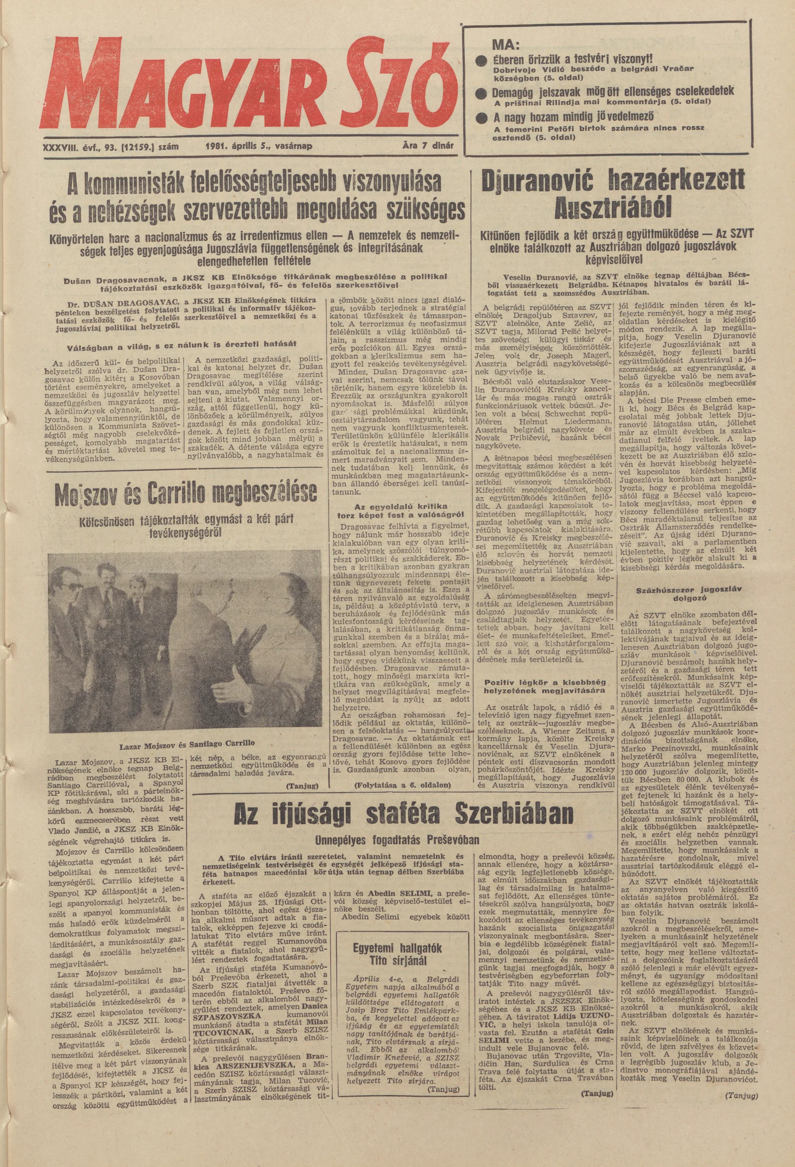 Magyar Szó, 38. évf. 1981. április 5. 93. sz.
