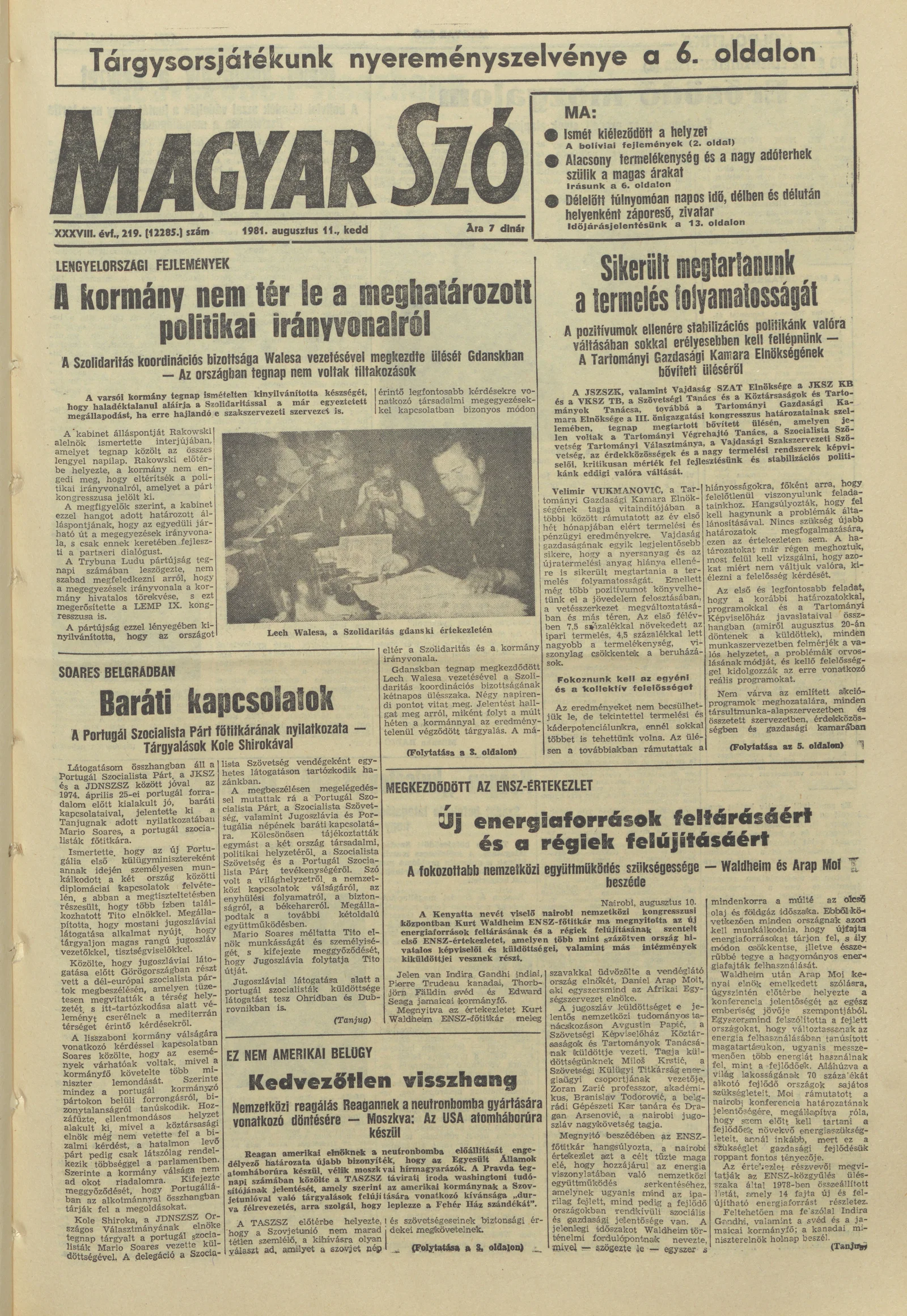 Magyar Szó, 38. évf. 1981. augusztus 11. 219. sz.