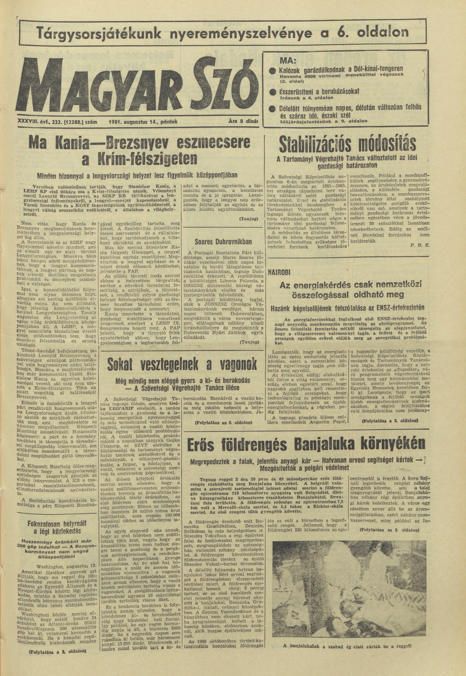 Magyar Szó, 38. évf. 1981. augusztus 14. 222. sz.