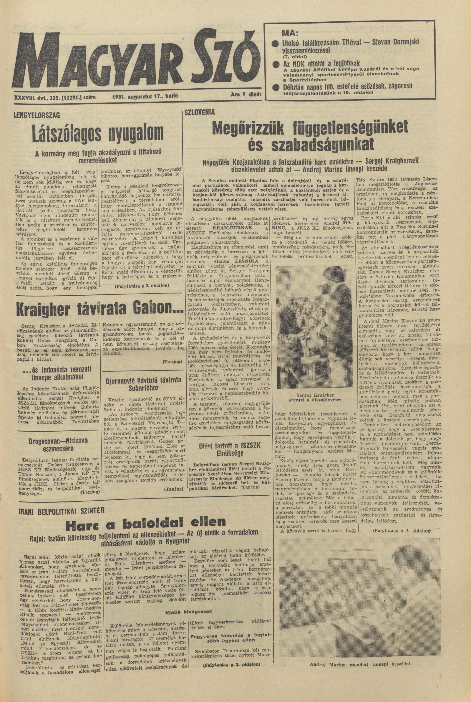 Magyar Szó, 38. évf. 1981. augusztus 17. 225. sz.