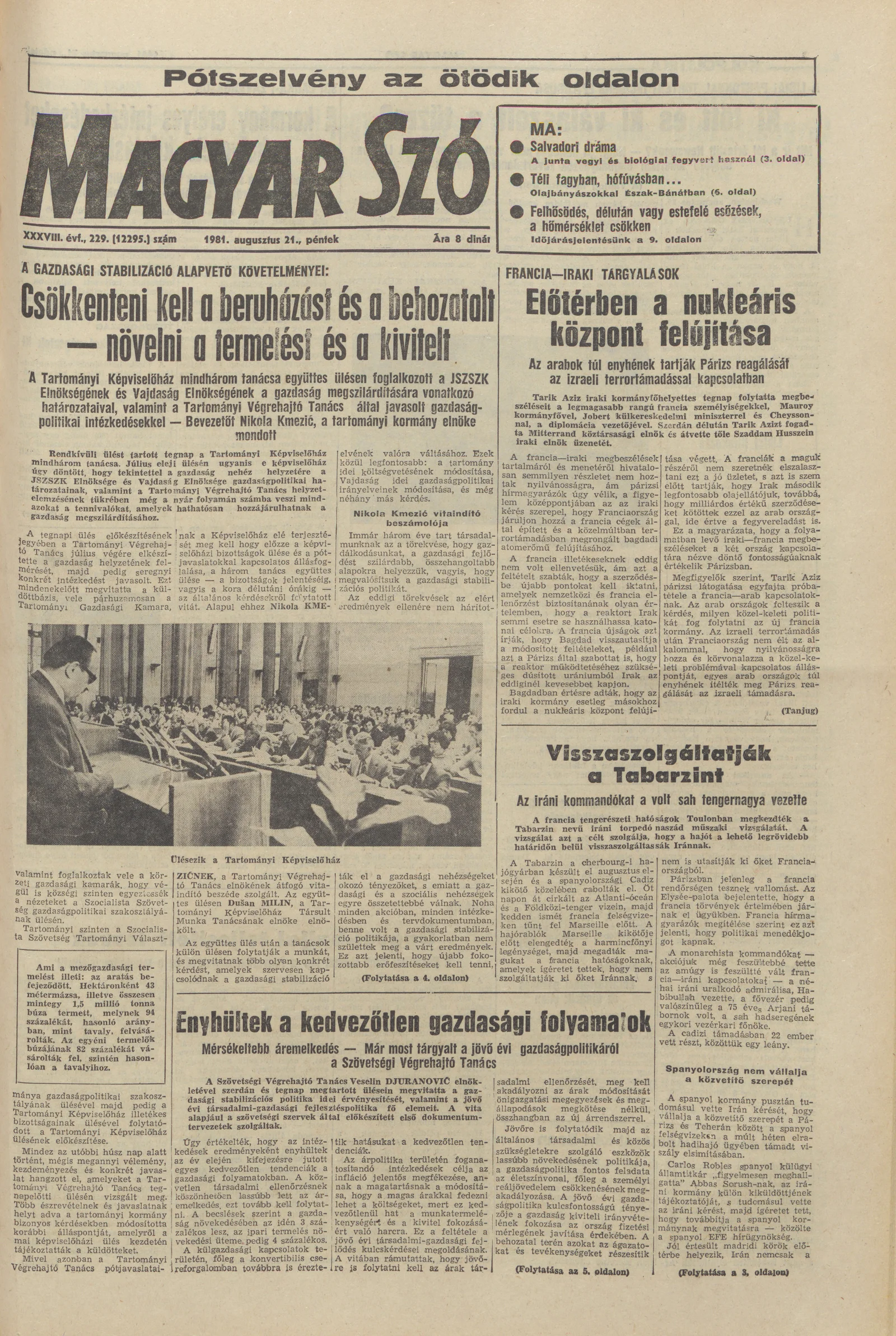 Magyar Szó, 38. évf. 1981. augusztus 21. 229. sz.