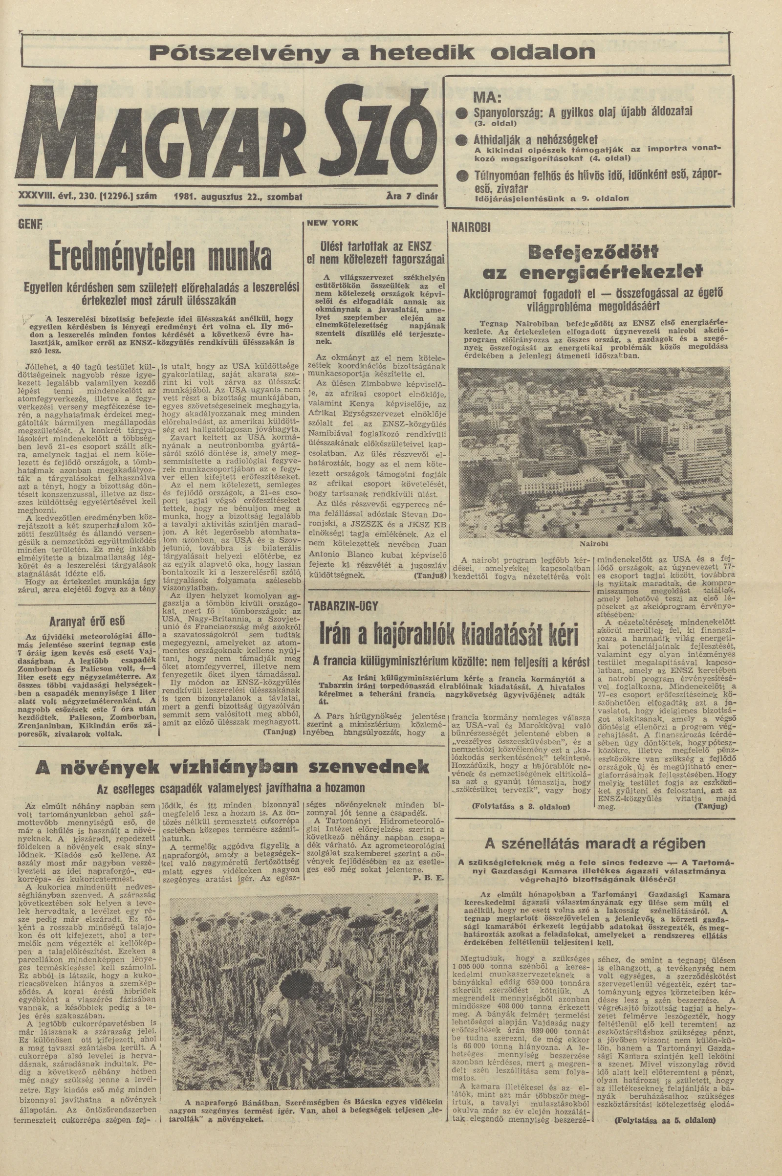 Magyar Szó, 38. évf. 1981. augusztus 22. 230. sz.