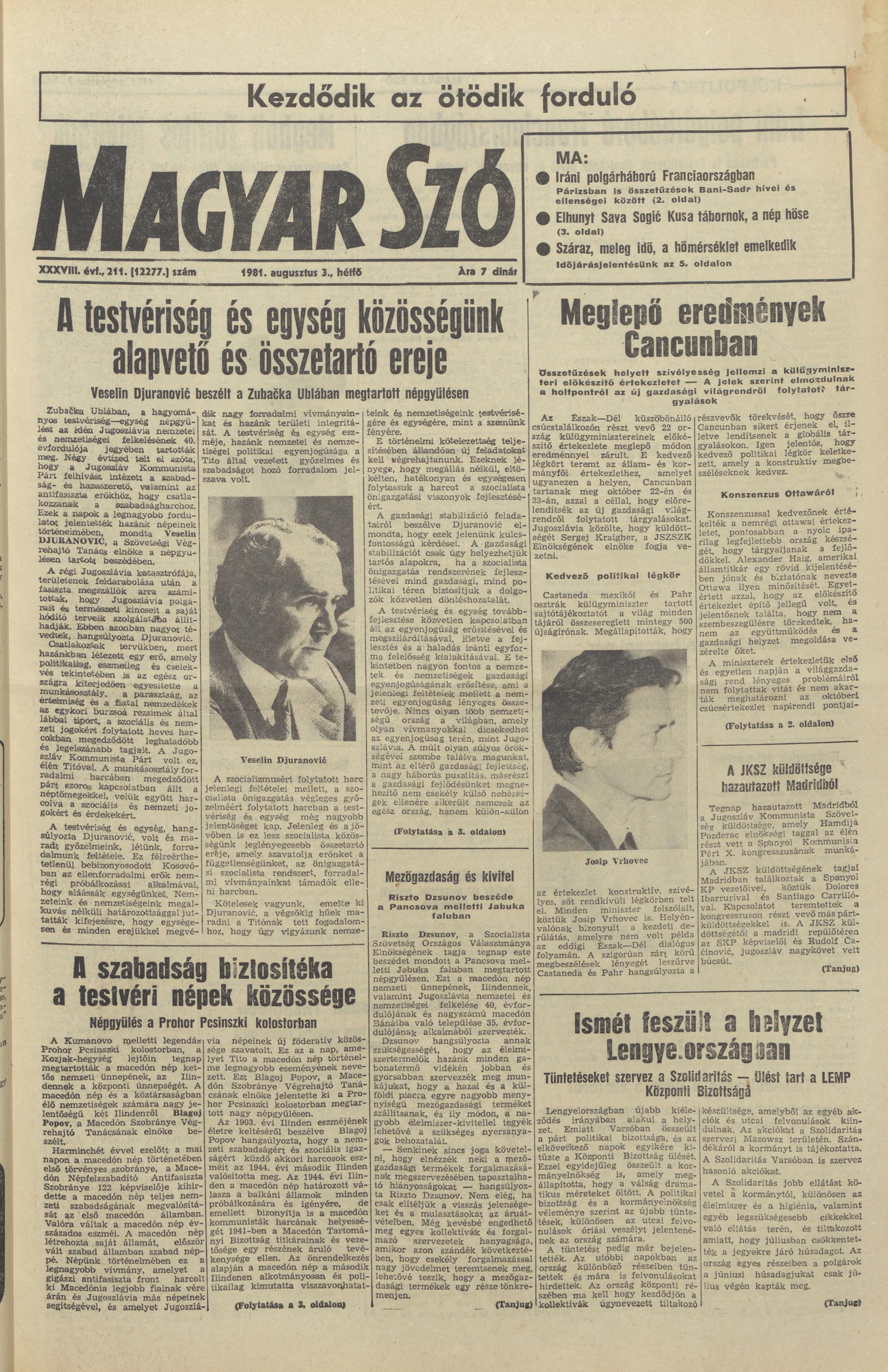 Magyar Szó, 38. évf. 1981. augusztus 3. 211. sz.