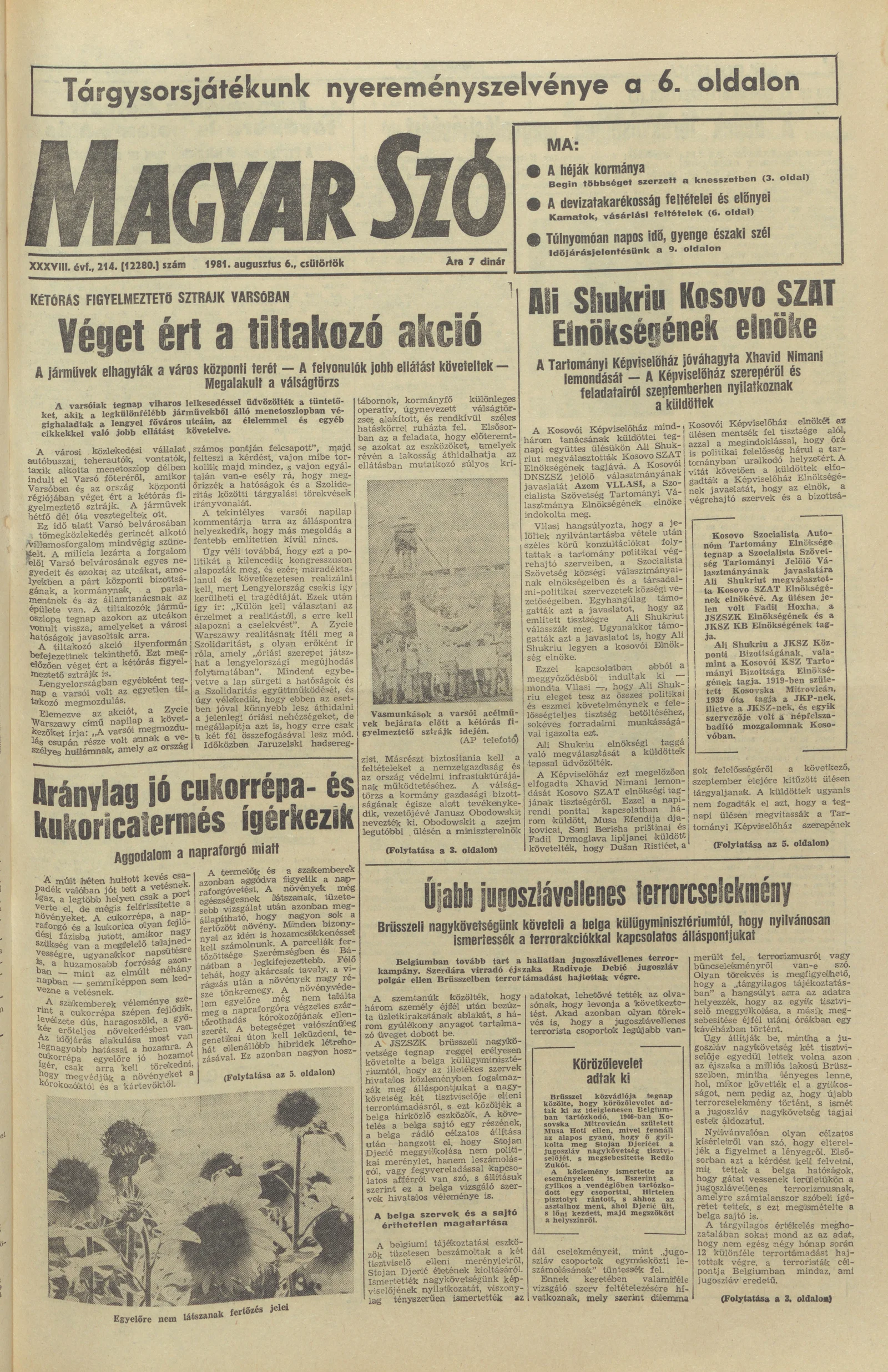 Magyar Szó, 38. évf. 1981. augusztus 6. 214. sz.