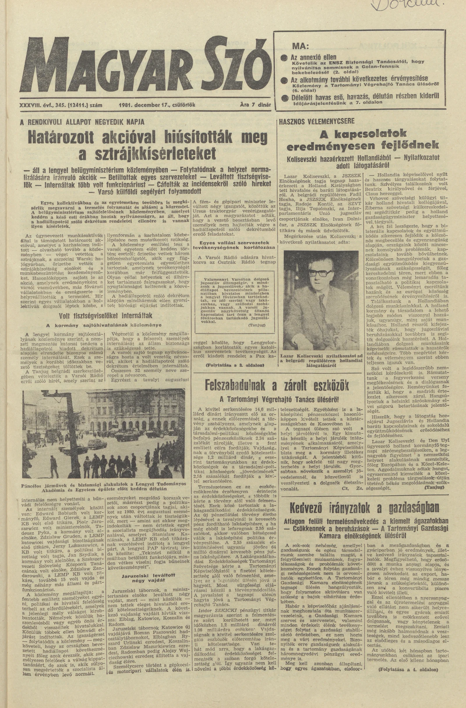 Magyar Szó, 38. évf. 1981. december 17. 345. sz.