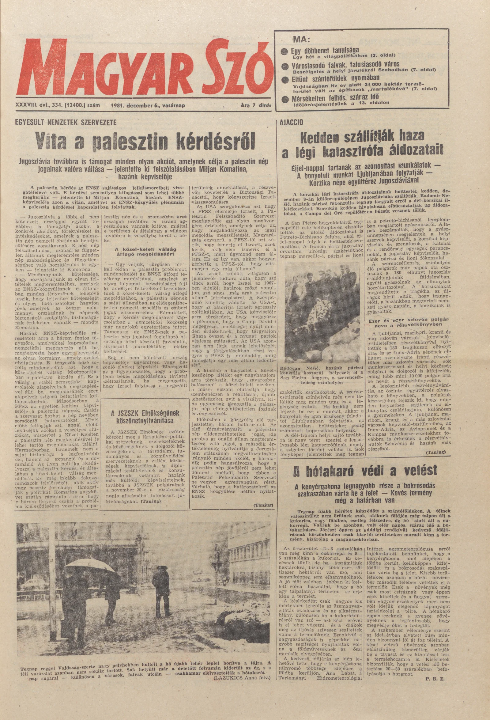 Magyar Szó, 38. évf. 1981. december 6. 334. sz.