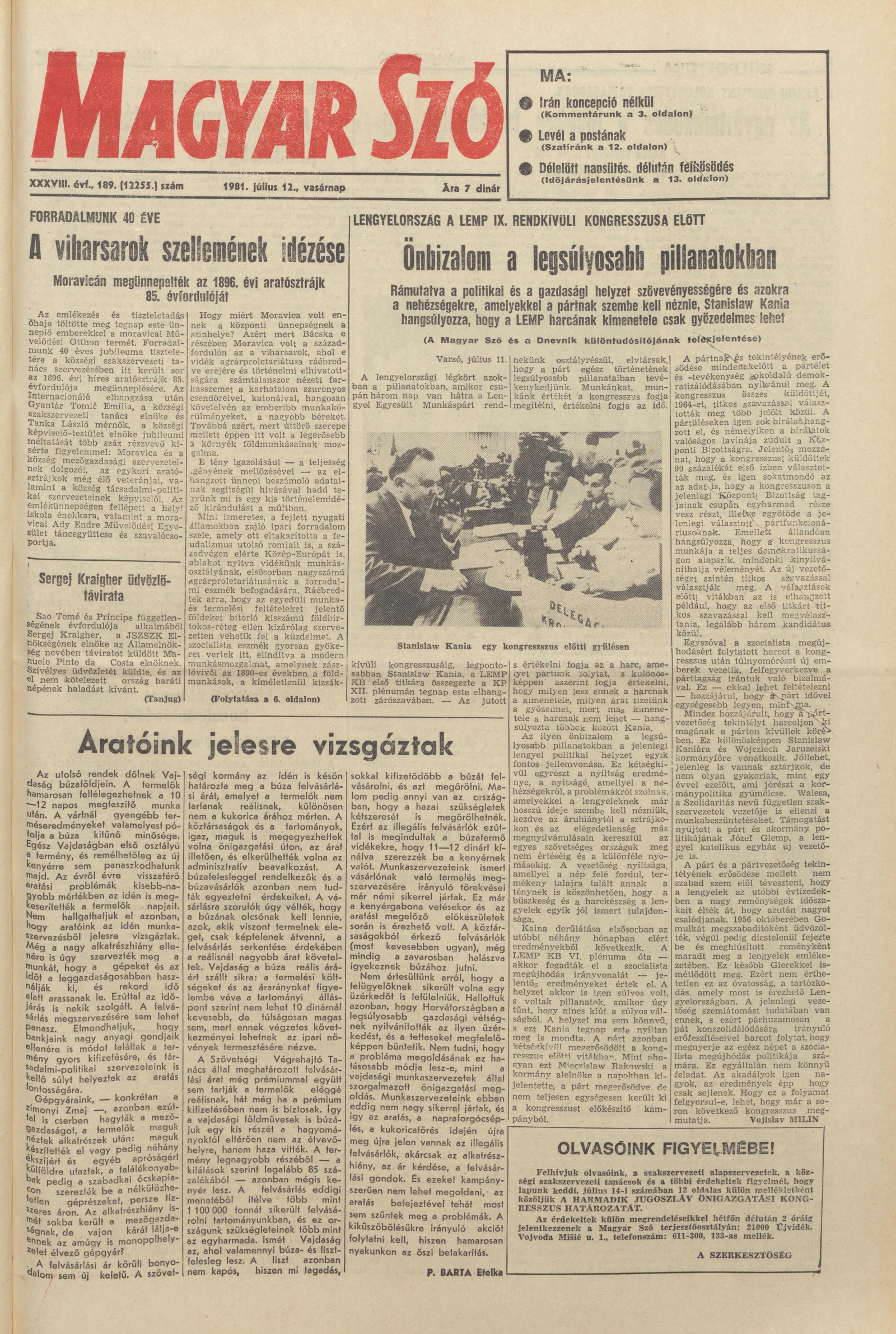Magyar Szó, 38. évf. 1981. július 12. 189. sz.