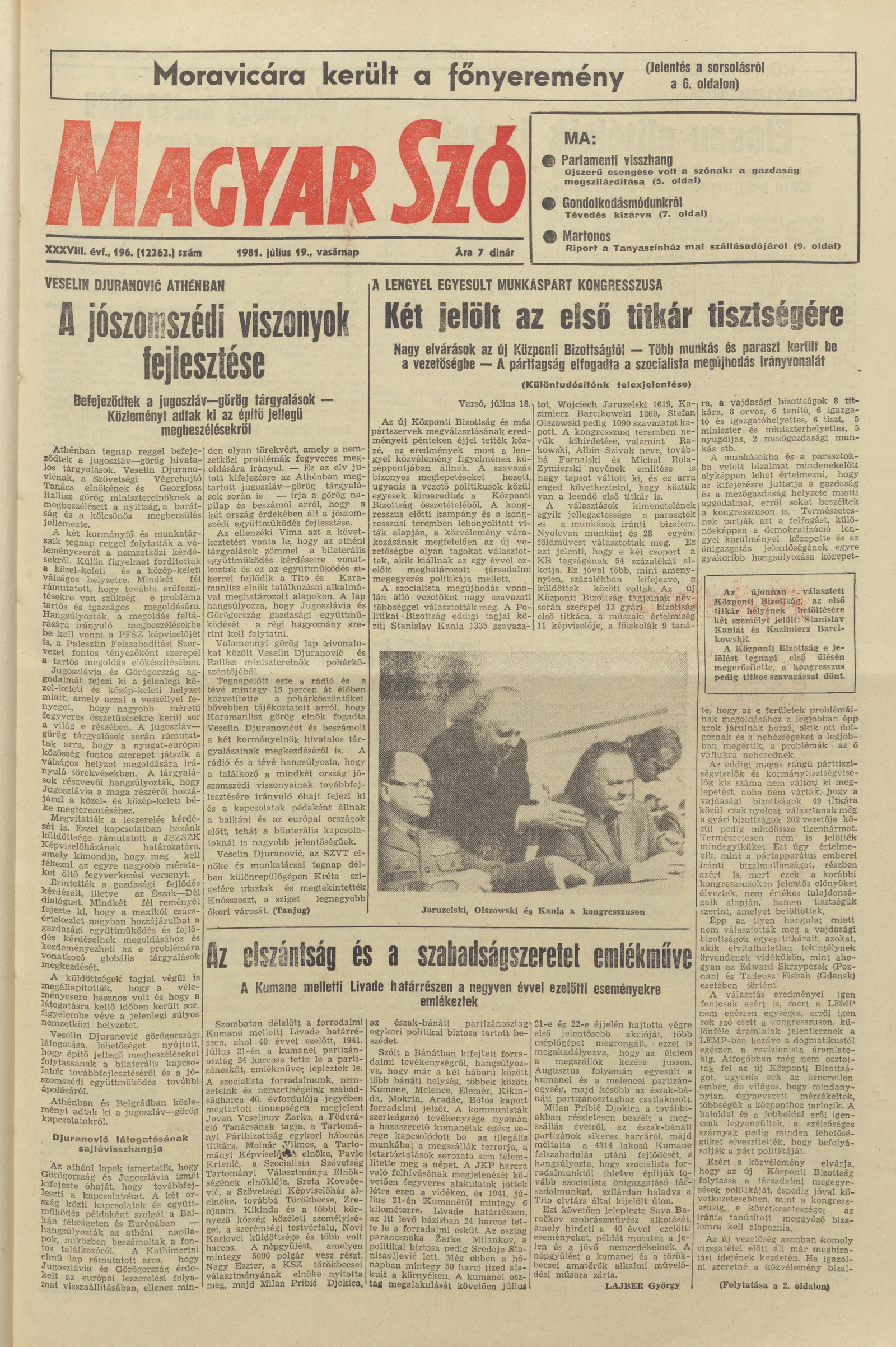 Magyar Szó, 38. évf. 1981. július 19. 196. sz.