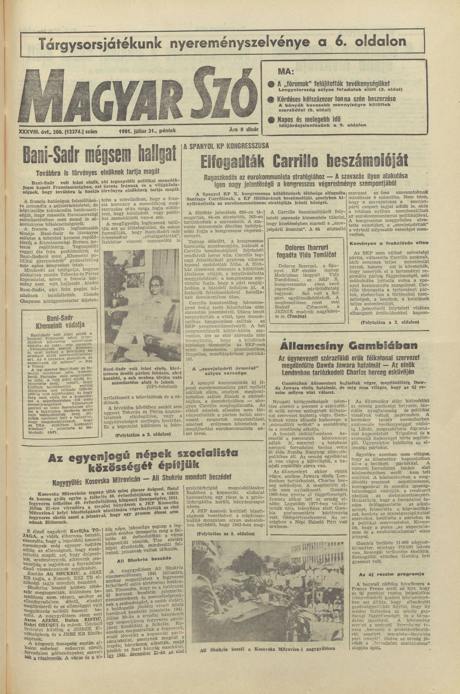 Magyar Szó, 38. évf. 1981. július 31. 208. sz.
