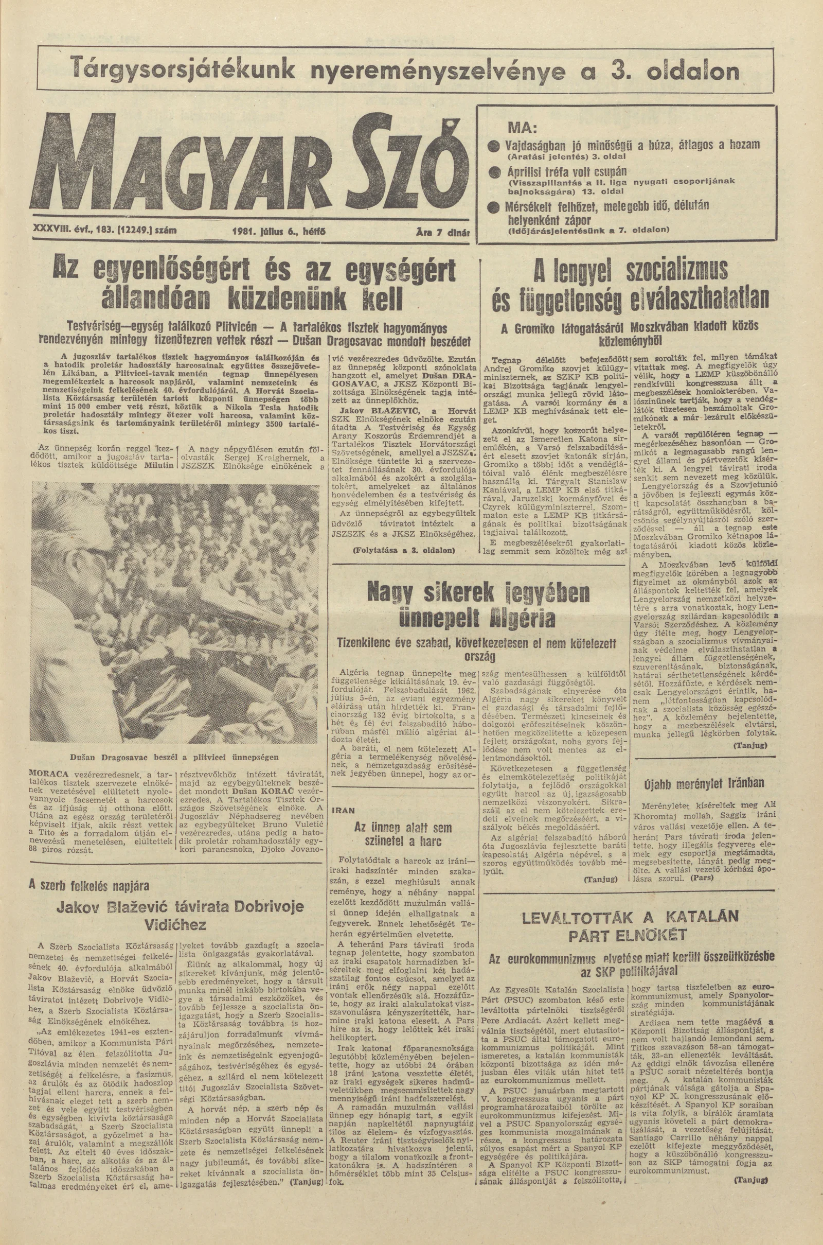 Magyar Szó, 38. évf. 1981. július 6. 183. sz.