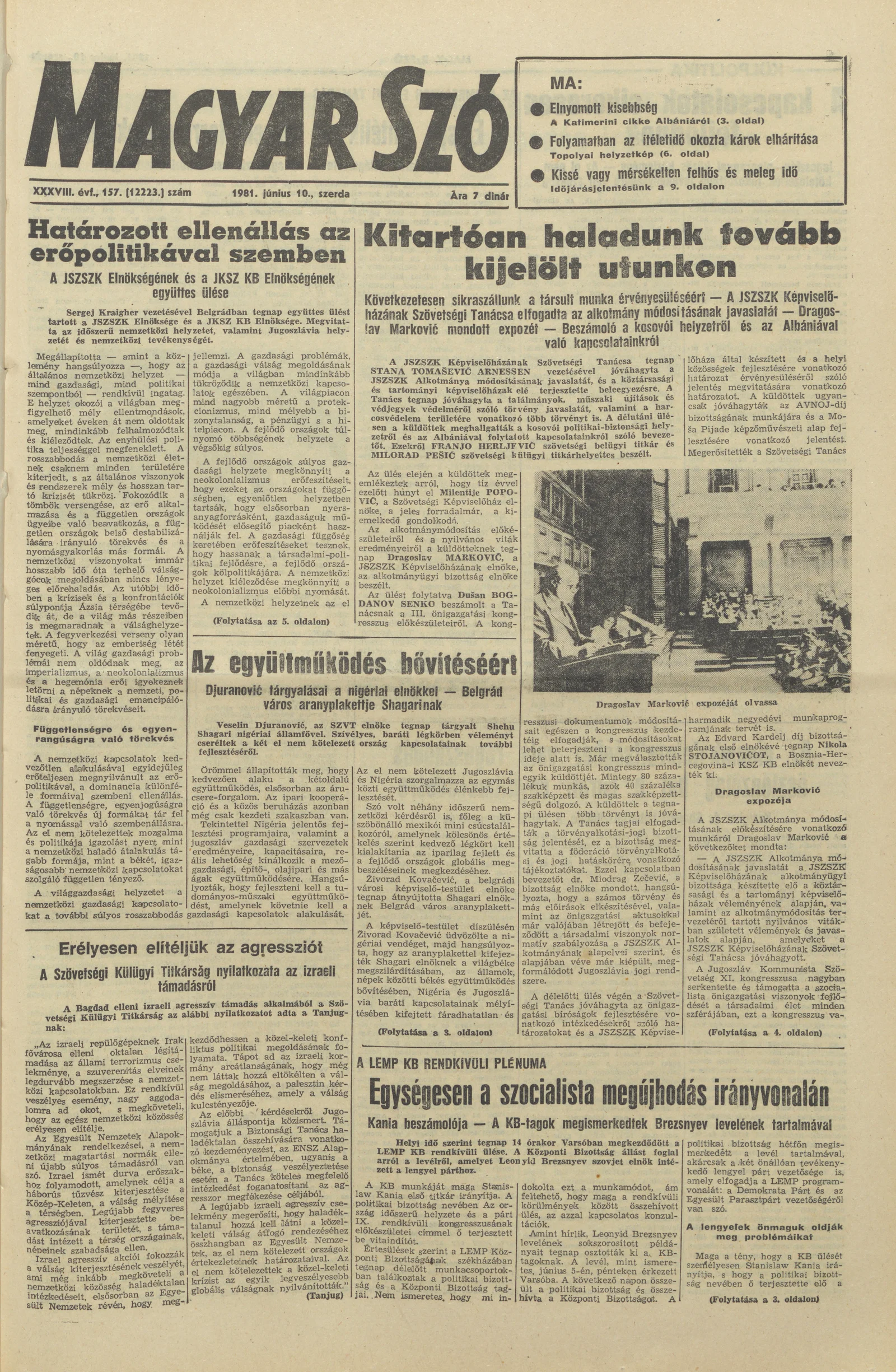 Magyar Szó, 38. évf. 1981. június 10. 157. sz.