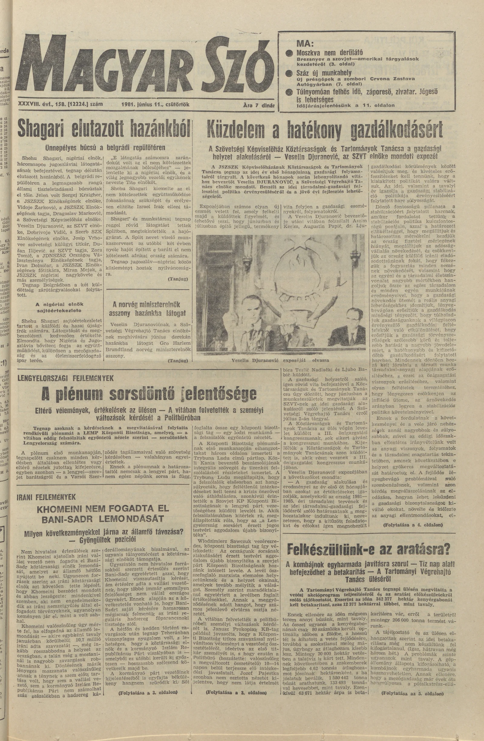 Magyar Szó, 38. évf. 1981. június 11. 158. sz.