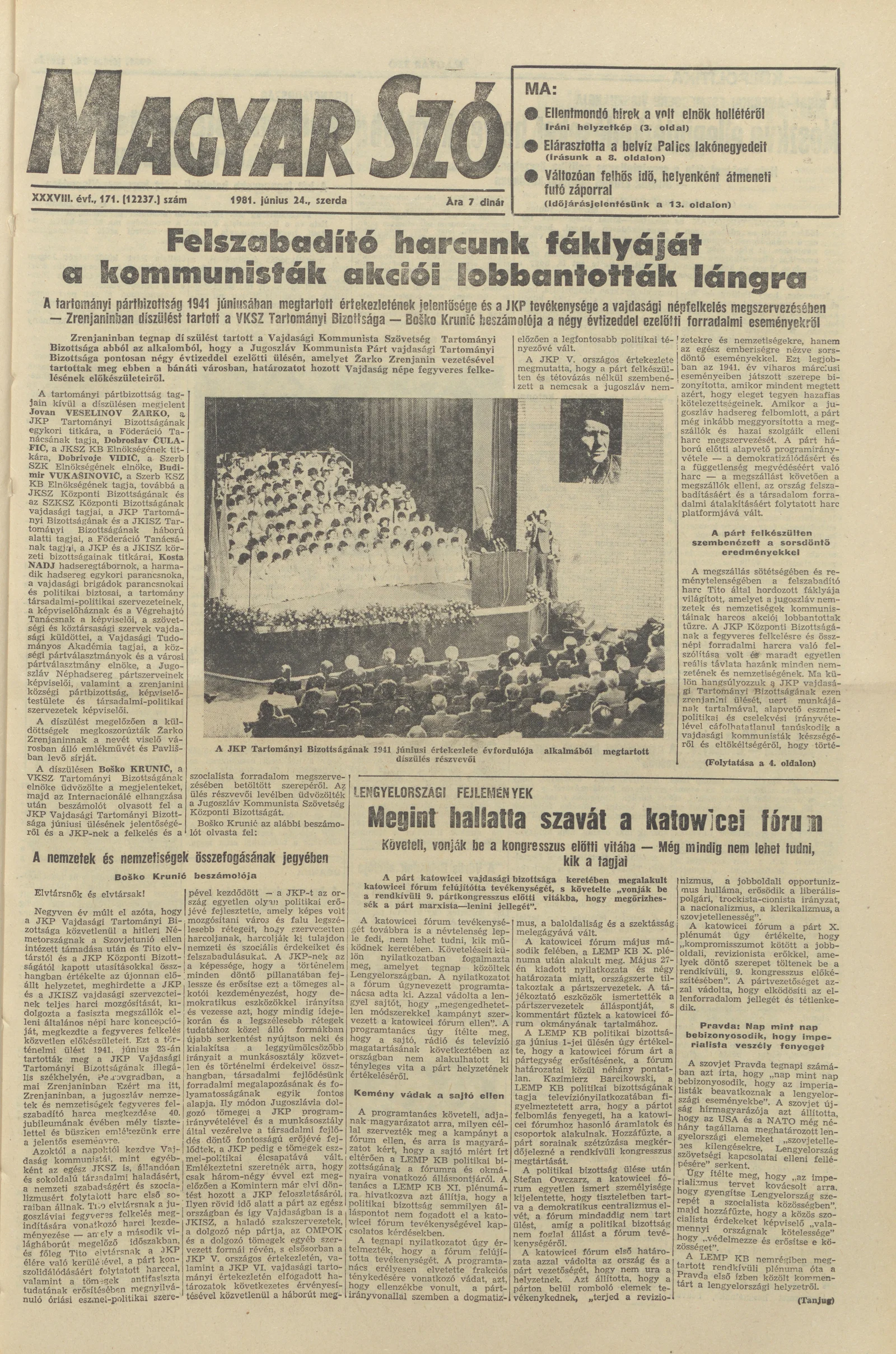 Magyar Szó, 38. évf. 1981. június 24. 171. sz.