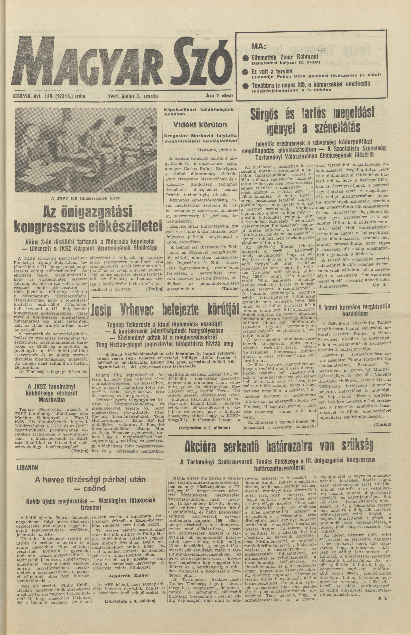 Magyar Szó, 38. évf. 1981. június 3. 150. sz.