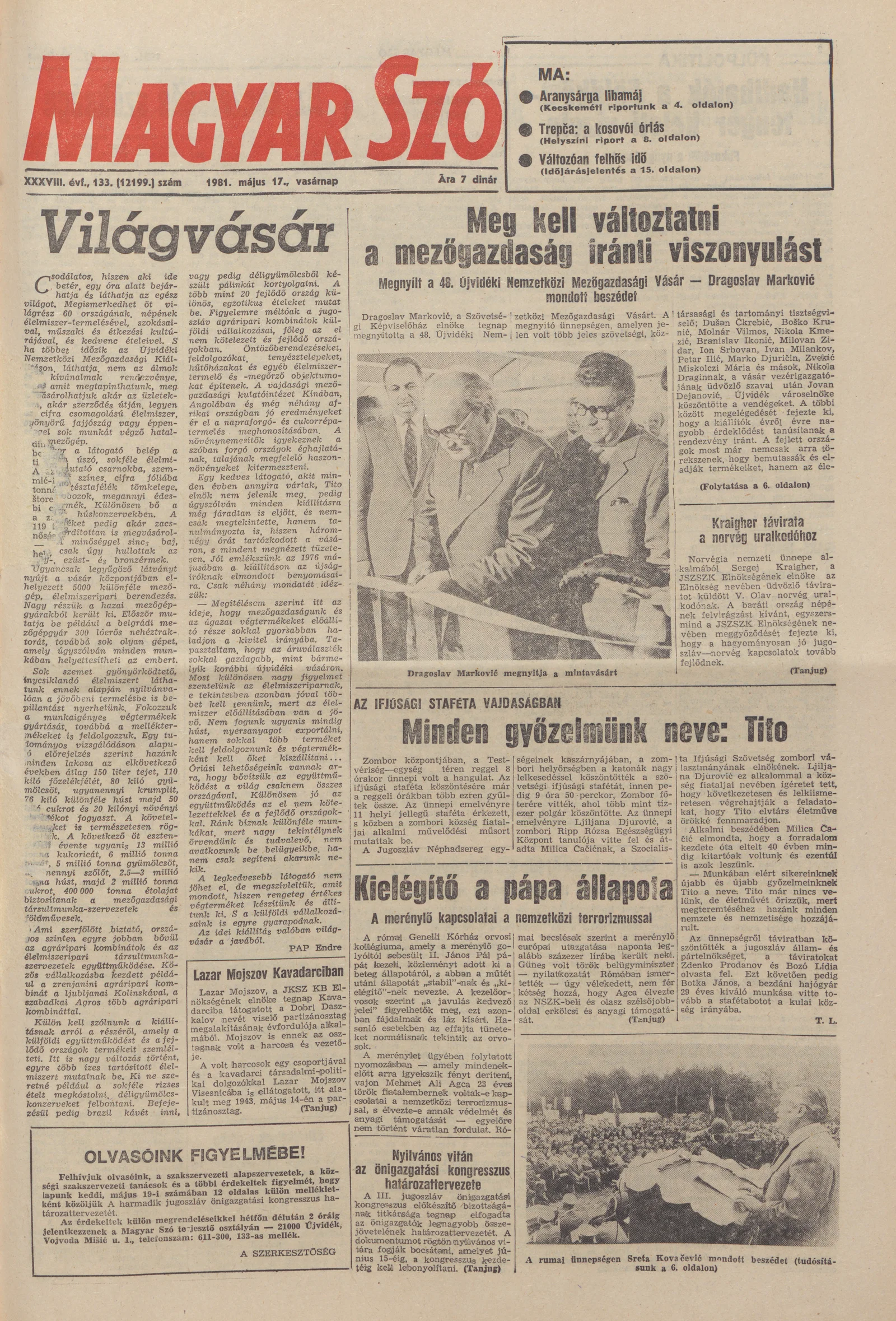 Magyar Szó, 38. évf. 1981. május 17. 133. sz.
