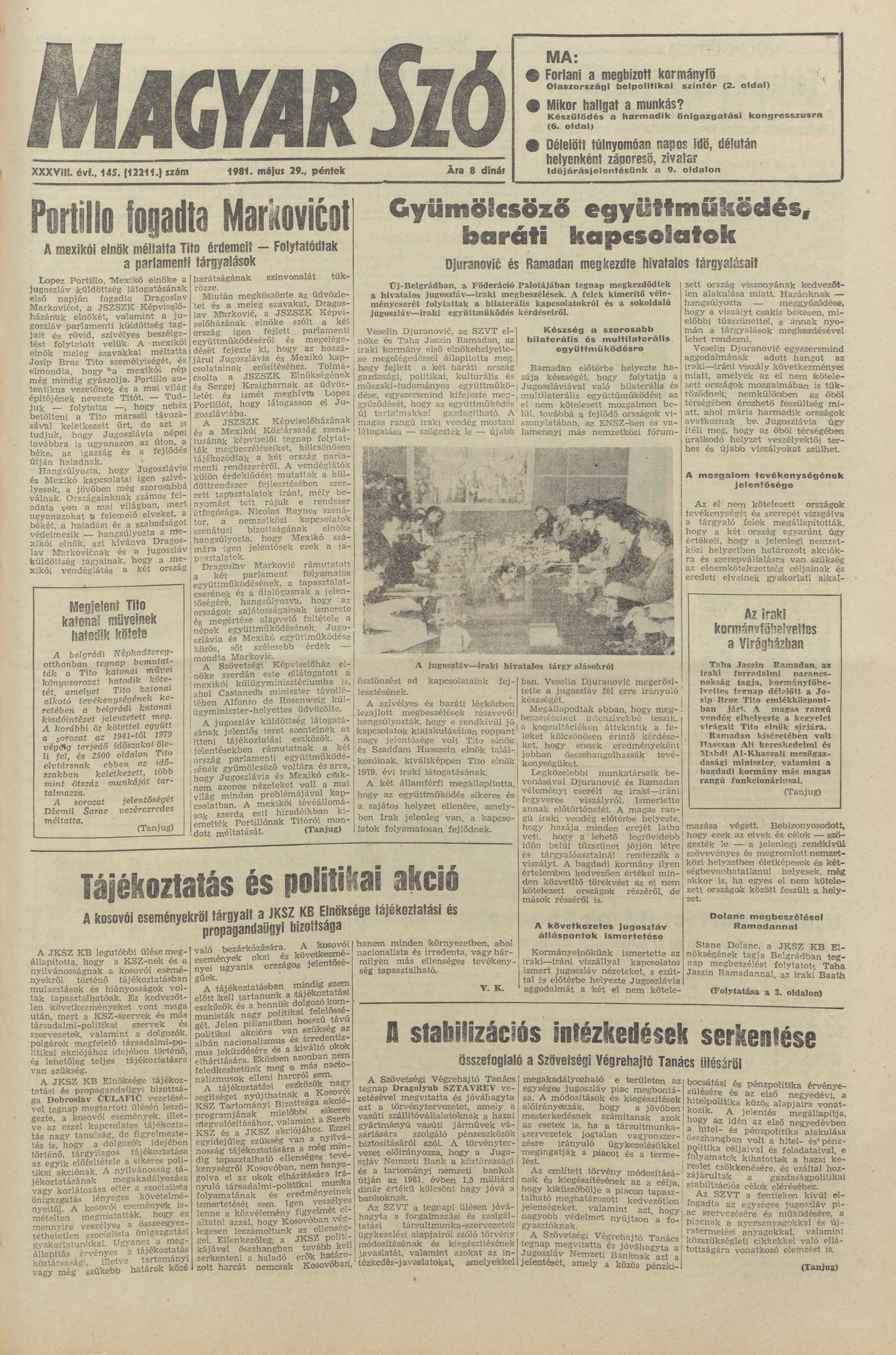Magyar Szó, 38. évf. 1981. május 29. 145. sz.