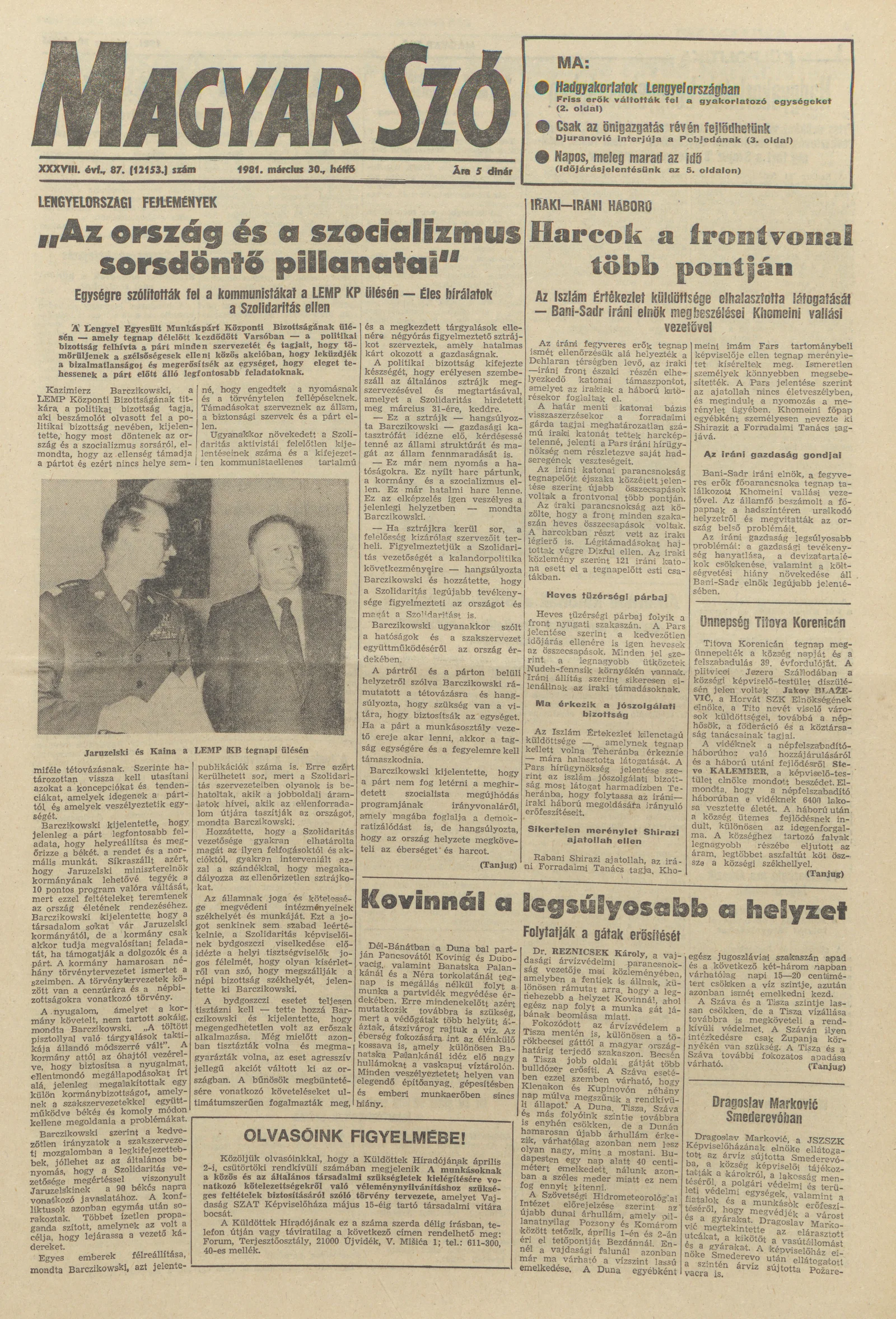 Magyar Szó, 38. évf. 1981. március 30. 87. sz.