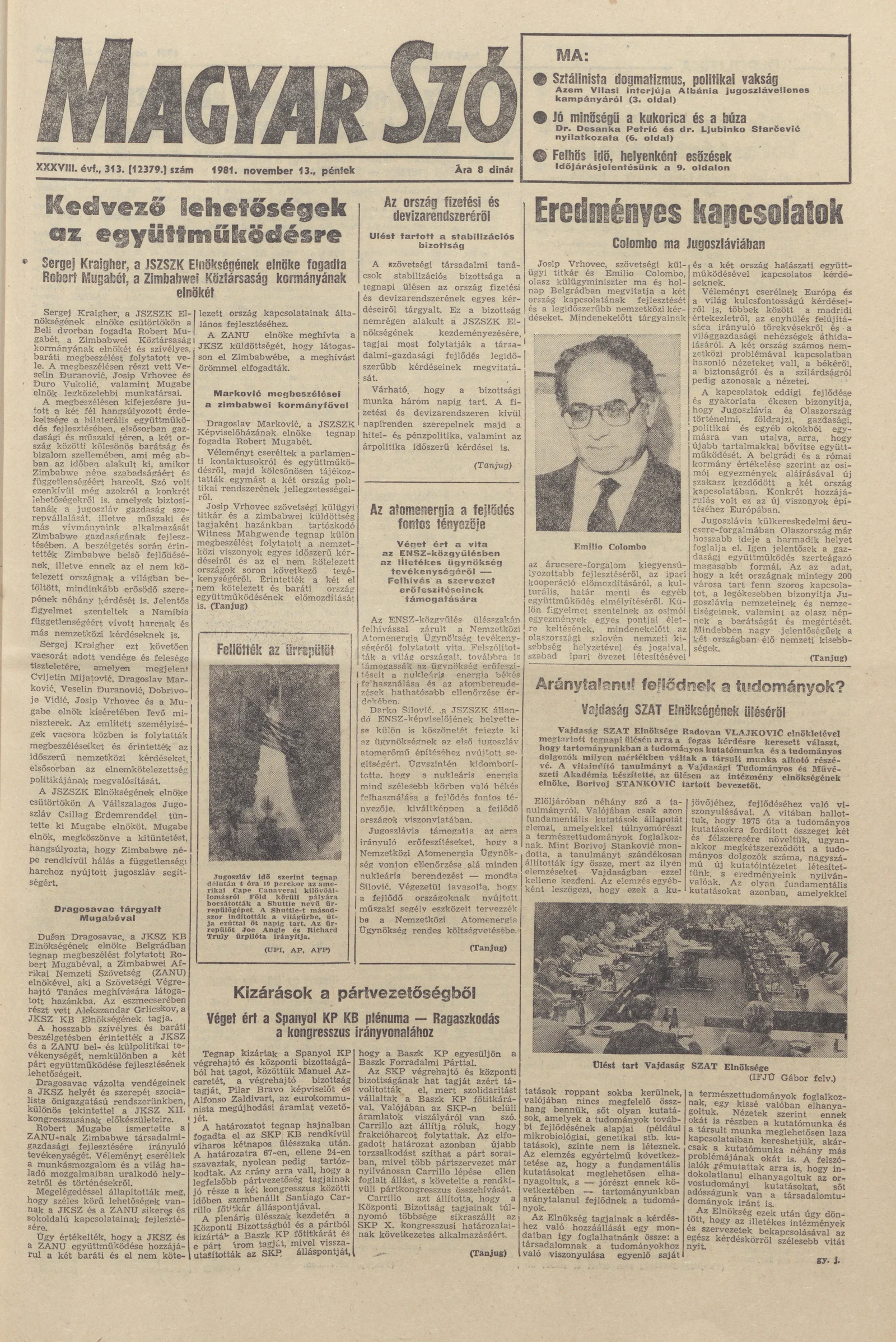 Magyar Szó, 38. évf. 1981. november 13. 313. sz.