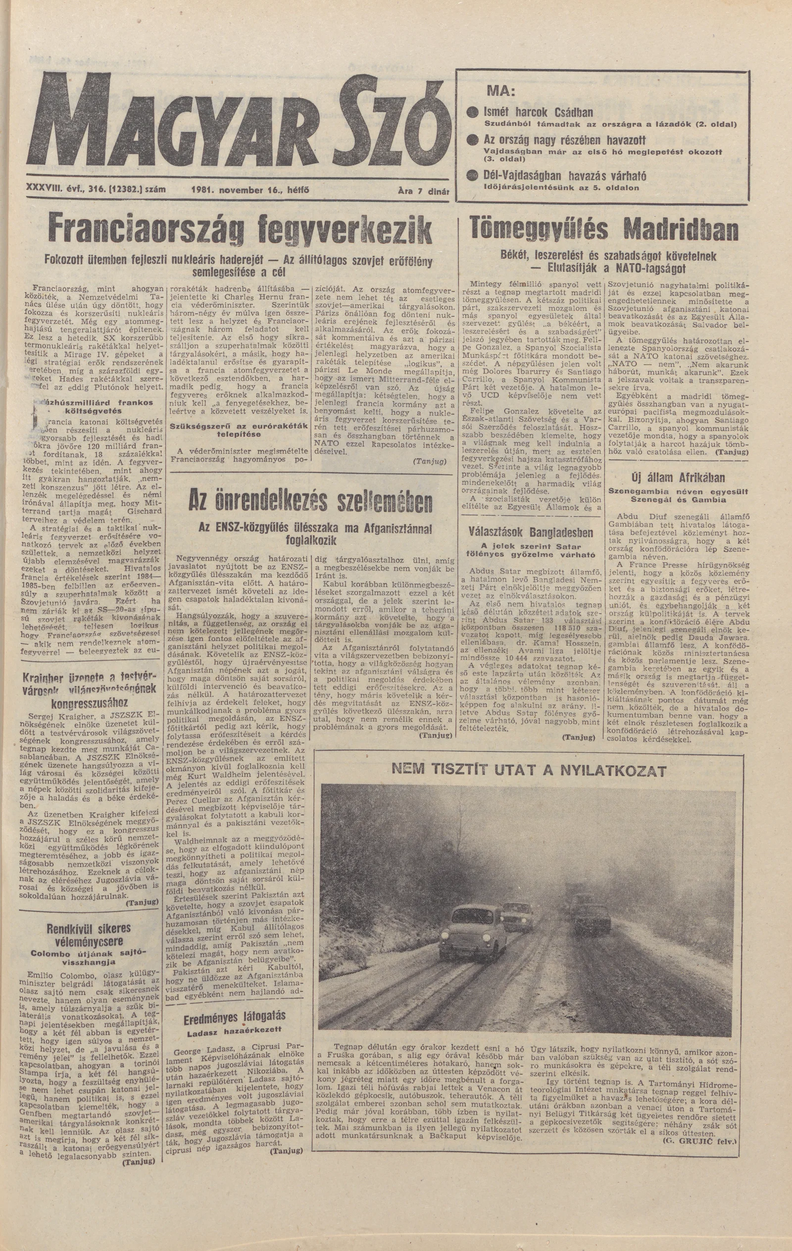 Magyar Szó, 38. évf. 1981. november 16. 316. sz.