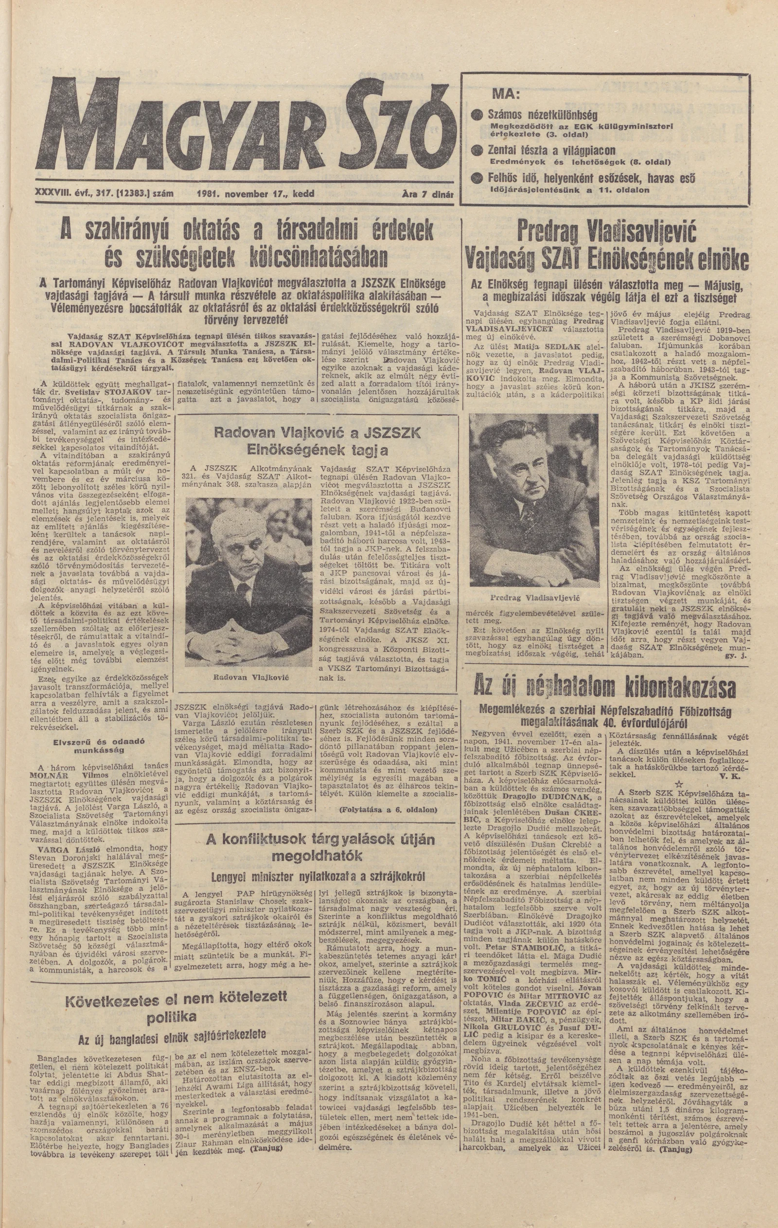 Magyar Szó, 38. évf. 1981. november 17. 317. sz.