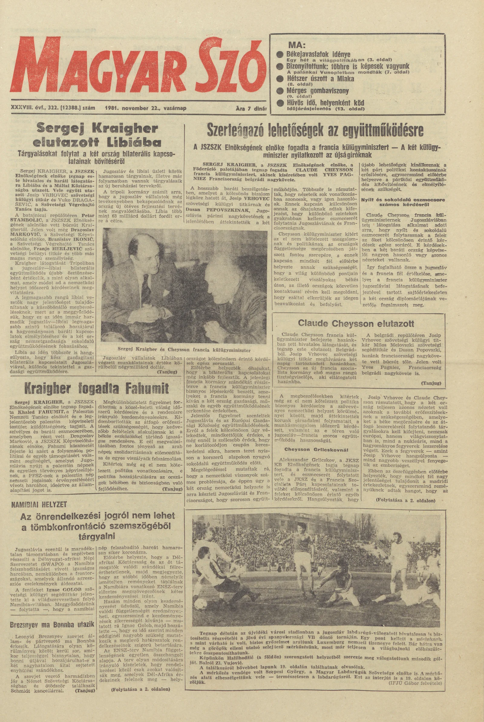 Magyar Szó, 38. évf. 1981. november 22. 322. sz.