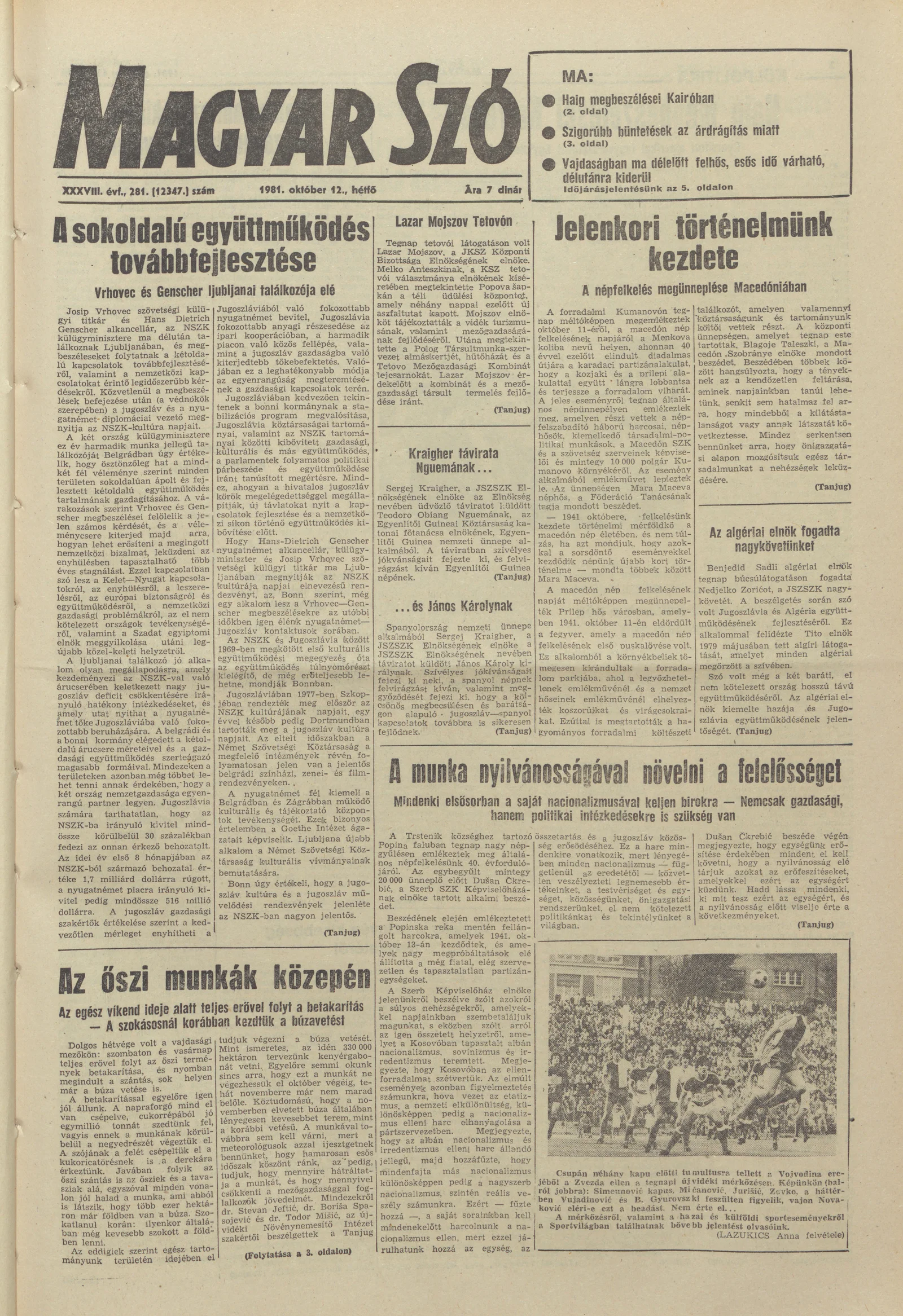 Magyar Szó, 38. évf. 1981. október 12. 281. sz.