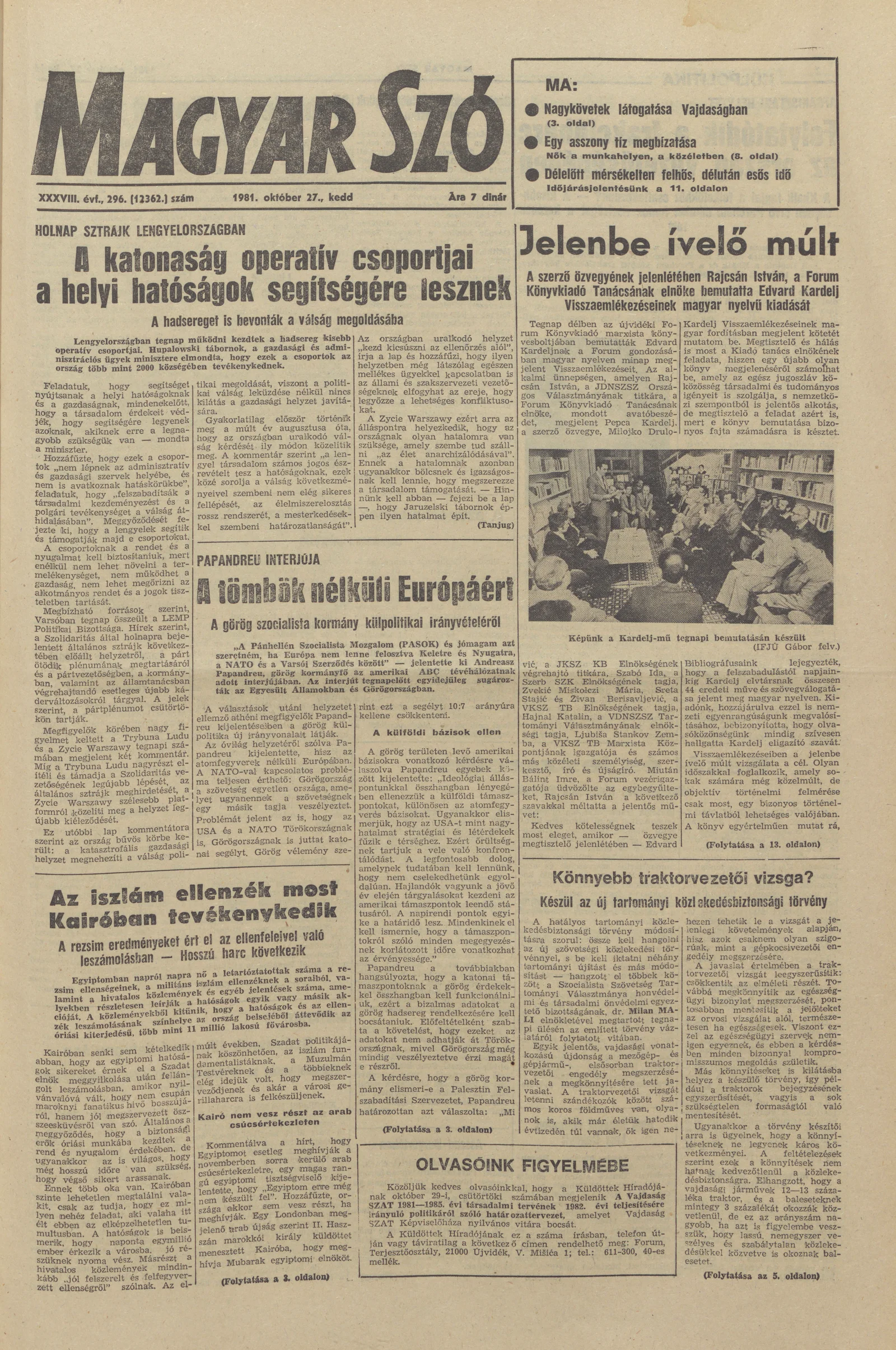 Magyar Szó, 38. évf. 1981. október 27. 296. sz.