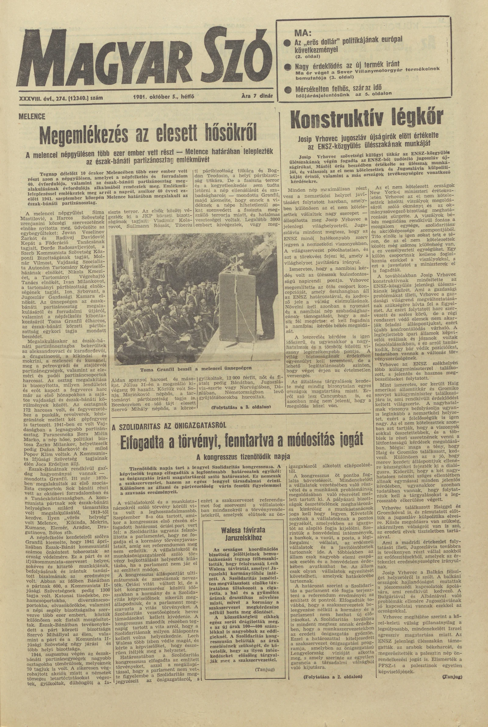 Magyar Szó, 38. évf. 1981. október 5. 274. sz.