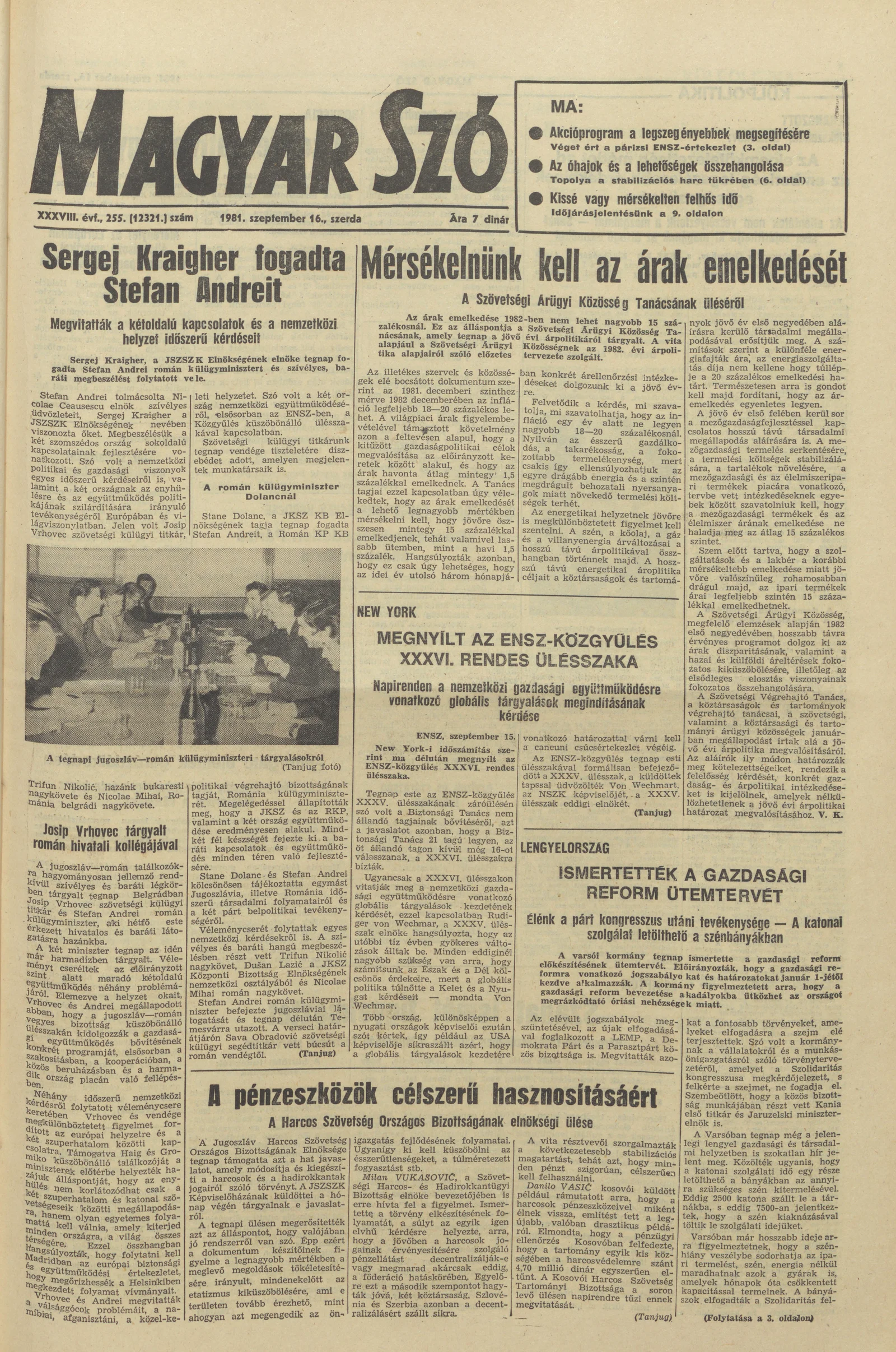 Magyar Szó, 38. évf. 1981. szeptember 16. 255. sz.