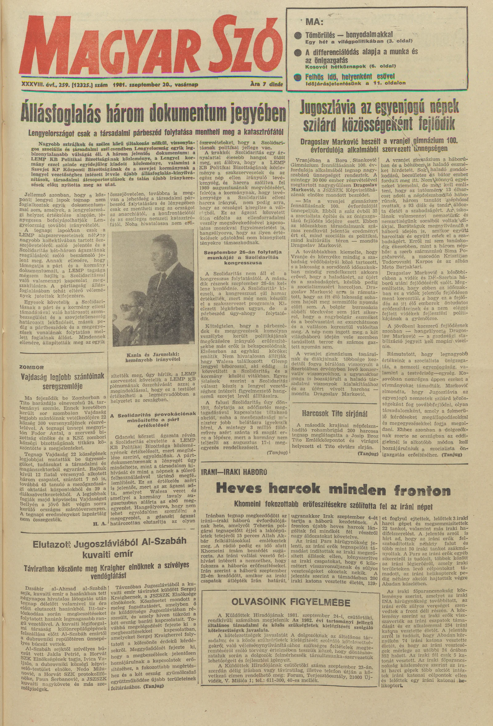 Magyar Szó, 38. évf. 1981. szeptember 20. 259. sz.