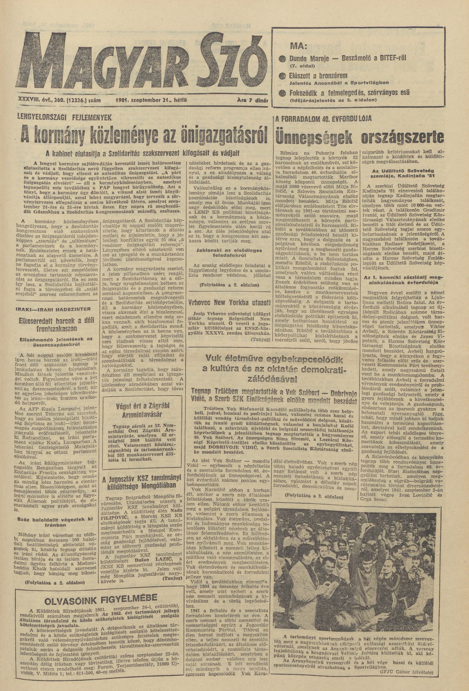 Magyar Szó, 38. évf. 1981. szeptember 21. 260. sz.