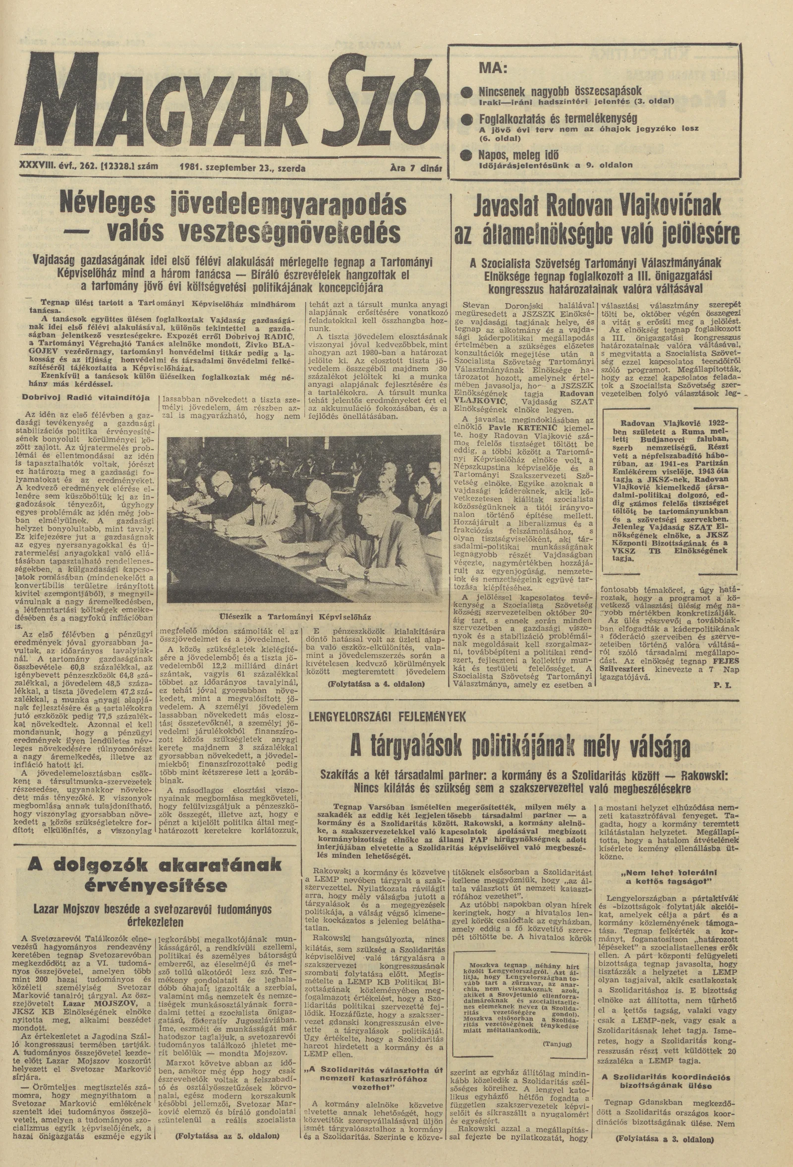 Magyar Szó, 38. évf. 1981. szeptember 23. 262. sz.